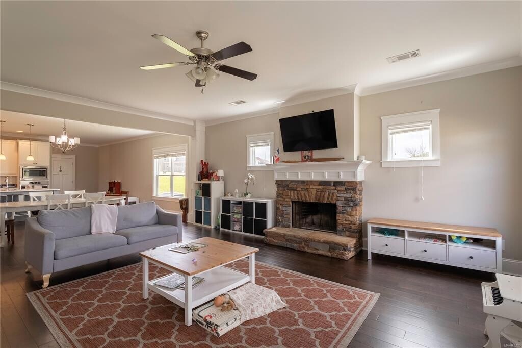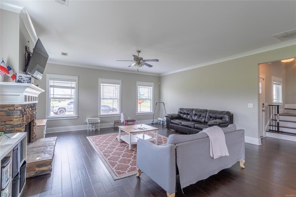 Wonderful 4 bedroom 3.5 bathroom home located in The Orchards! This beautiful property features a spacious wraparound porch and a charming balcony, offering the perfect balance of traditional Southern style and modern convenience. The home includes two master suites, four bedrooms, and 3.5 baths, providing plenty of space for family and guests. With a total of 3,950 square feet under roof, there's no shortage of room to enjoy. Located in a vibrant, walkable community, this home provides an opportunity for a more relaxed lifestyle where kids can walk or bike to school, and you can unwind on your large front porch. The tree-lined streets, with sidewalks on both sides, encourage outdoor living, while amenities like a neighborhood pool, playground, and lush common areas make this an ideal place to call home. Designed with both character and efficiency in mind, this home combines the charm of yesteryear with modern features such as energy-efficient elements and low-maintenance exteriors. James Hardie Color Plus Technology offers durable prefinished Hardie Board siding in an array of colors, requiring no painting and backed by a 15-year warranty. Thoughtful details like spray foam insulation in the attic, Low-E vinyl windows, tankless gas water heaters, and a Post Tension foundation with a 10-year structural warranty ensure lasting comfort and peace of mind. The interior is equally impressive, with a Smart Home Security System, stainless apron front kitchen sink, gas cooktop, and stainless vent hood. The kitchen boasts painted or stained shaker-style maple cabinets, while the home features unique lighting, plumbing fixtures, cove crown molding, craftsman trim, and blinds throughout. The layout has been carefully designed to maximize space, including multi-purpose areas that cater to your unique needs. This home truly offers the perfect blend of style, functionality, and comfort, making it an ideal place for your family to thrive.