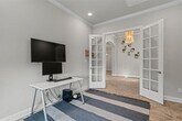 Welcome home to a stunning single-story rental in Georgetown’s highly sought-after Wolf Ranch community. This corner-lot home blends style, comfort, and low-maintenance living, offering 4 bedrooms, 3.5 baths, a dedicated office, a spacious flex room, and a formal dining area - plenty of room for work, play, and relaxation. Inside, you’ll find thoughtful upgrades throughout, including marble countertops, wood-look tile flooring, 8-foot doors, and high ceilings that create an open, airy feel. Warm wood ceiling beams, a tray ceiling, a built-in entertainment center, and a sage green fireplace add character and make the home feel both cozy and refined. The kitchen features an oversized island, subway tile backsplash, white cabinetry, pantry, and stainless-steel appliances — ideal for cooking, hosting, or everyday convenience. A secondary bedroom with a private ensuite is perfect for guests or multigenerational living, and the built-in bunkbeds add charm and functionality. The dedicated office with French doors and built-ins makes working from home easy, while the flex room provides extra space for hobbies, play, or lounging. The primary suite offers a peaceful escape with dual vanities, a soaking tub, a frameless glass shower, and a spacious walk-in closet. The backyard is designed for effortless living with premium turf, giving you a green yard year-round with little to no maintenance. Enjoy the covered patio, outdoor fireplace, and built-in kitchen with a sink. Located next to Barefoot Park, the home offers quick access to community events, green space, and the energy that makes Wolf Ranch special. Enjoy two amenity centers, pools, fitness facilities, trails, and a full social calendar. Plus, you’re just minutes from Wolf Ranch Shopping Center, H-E-B, Target, and downtown Georgetown. This rental offers luxury, convenience, and a low-maintenance lifestyle - all in one of Georgetown’s premier neighborhoods.