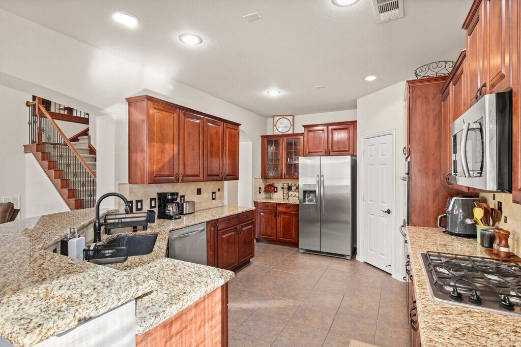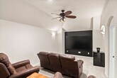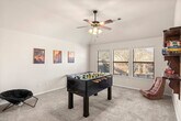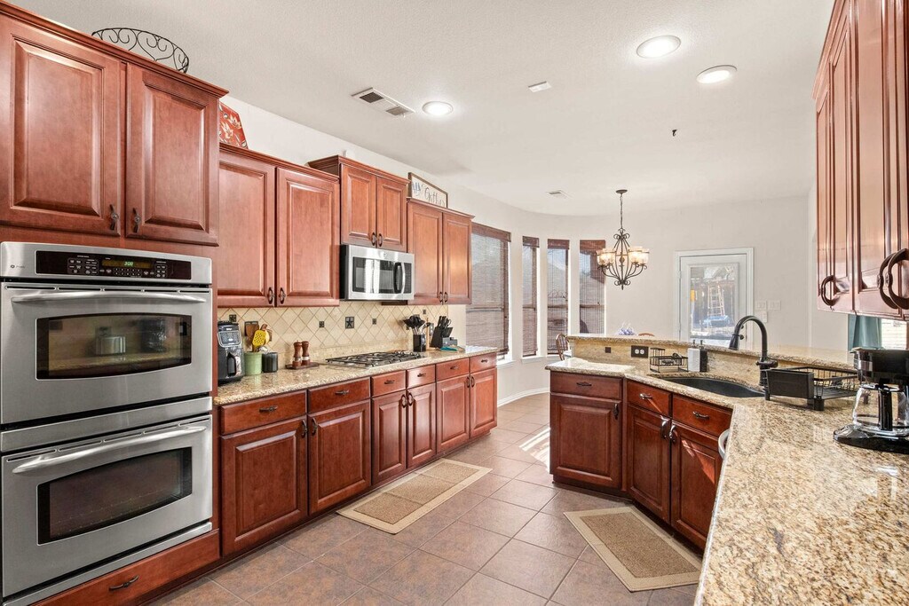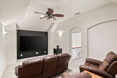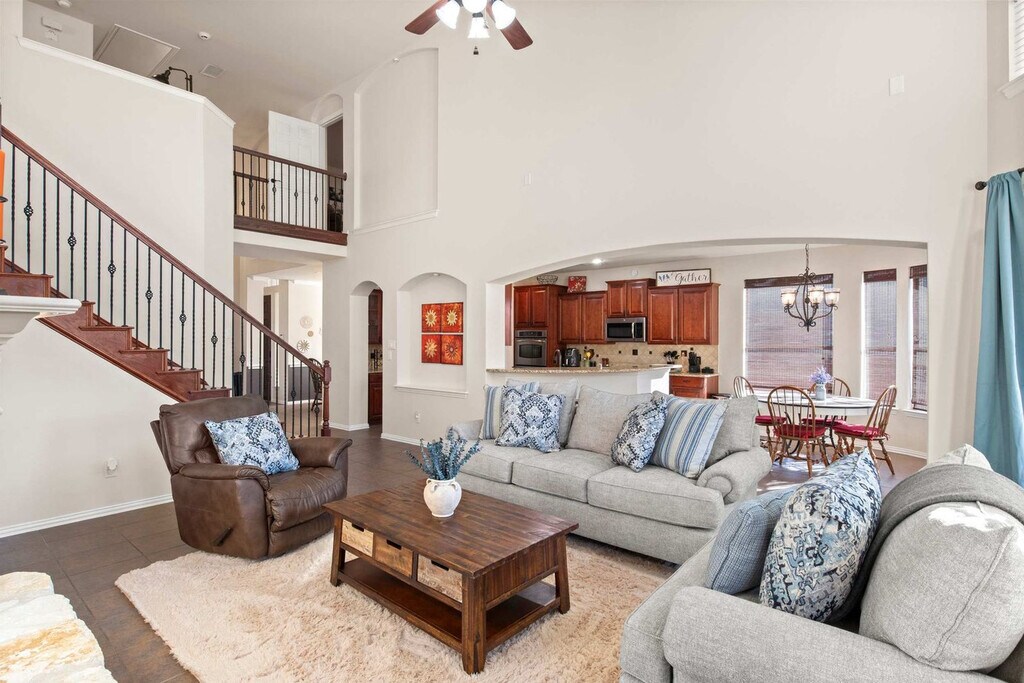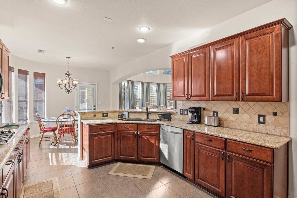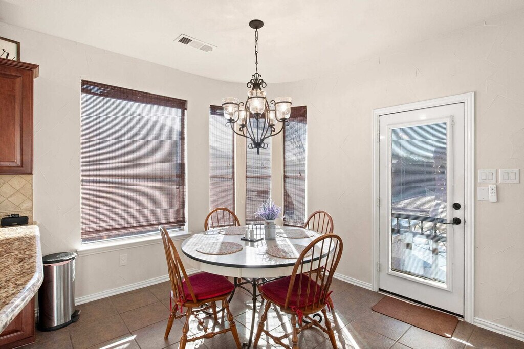 Feel at home in this spacious retreat located just minutes from Lake Lewisville. With 4 bedrooms and 3 bathrooms, this home offers over 3,200 square feet of comfortable living space. This home features a fully equipped kitchen with stainless-steel appliances, including ovens, a fridge, a freezer, a stove, a microwave, and a dishwasher, as well as cooking essentials. The dining area includes a cozy breakfast nook and a formal dining area with place settings and cutlery. The living area offers a couch and sofas, a coffee table, a designer rug, a flat-screen TV, and high-speed Wi-Fi. A laundry room with a washer and dryer is available for your use. You will also have access to a private, fully fenced backyard. House-trained pets are welcome with a non-refundable pet fee of $150 per pet, with a maximum of 2 pets per stay. An additional nightly rate of $29 will be applied for each guest exceeding six. Nestled along the shores of Lake Lewisville, Hickory Creek offers a peaceful lakeside escape with the convenience of nearby city life. Lewisville Lake Park, Wayne Ferguson Plaza, and Lewisville Grand Theater are all within a short drive. Dallas attractions such as the ICR Discovery Center for Science & Earth History and the Mandalay Canal Walk at Las Colinas are also easily accessible. Smoking of any type is not allowed, and violations are subject to a $450 fine plus the cost to clean, deodorize, and repair damages. Only registered guests are allowed on the property. The fireplace should only be used if you are familiar with how to use it properly and should not be left unattended. No street parking is allowed due to City Parking Regulations. The maximum number of cars allowed are 3 in the garage and 3 in the driveway. [SI]