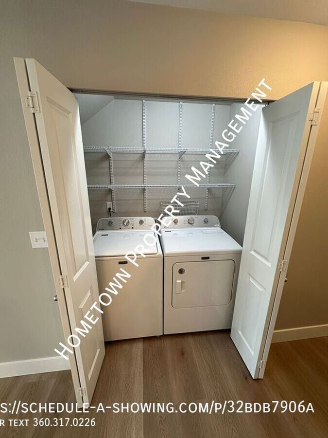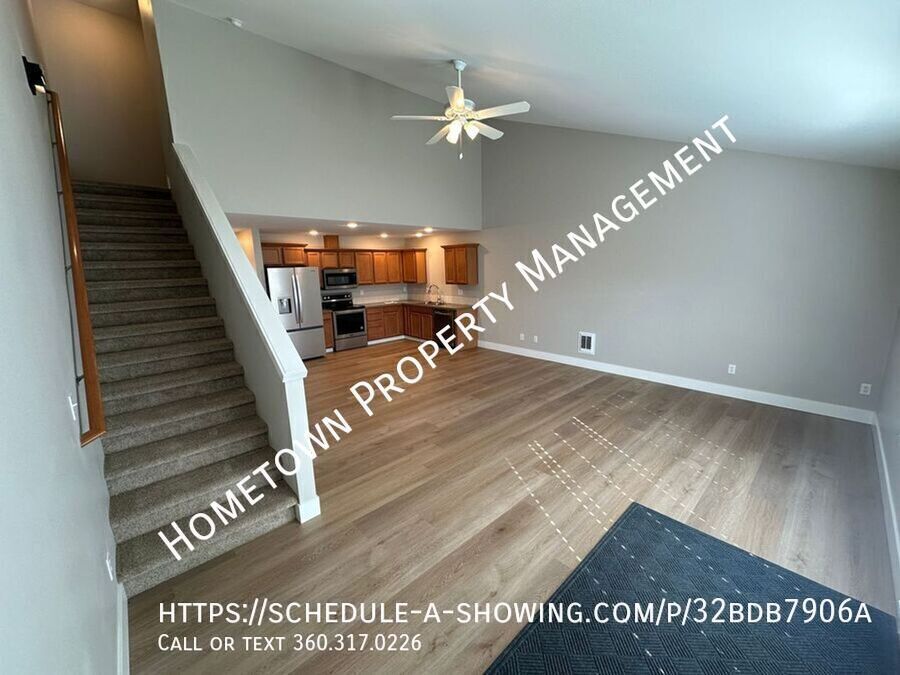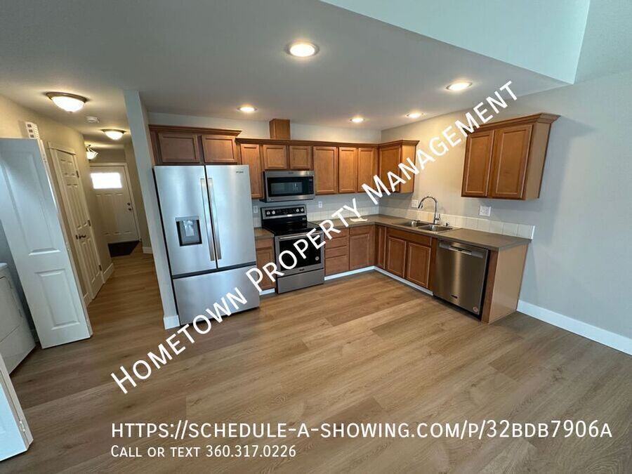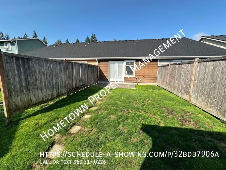 This spacious two-story rental home offers a comfortable and functional layout spanning nearly 1,400 sq ft, and features 3 bedrooms and 2.5 bathrooms. The primary suite is conveniently located on the first floor and includes a walk-in closet and private bath. An additional half-bath is also available on the main level for guests. Enjoy the open-concept kitchen equipped with an electric stove/oven, microwave, dishwasher, and refrigerator—all flowing seamlessly into the combined living and dining area. Upstairs, you'll find two smaller bedrooms and a full bath. Additional features include a 1-car garage, washer/dryer (provided as-is), and a partially fenced backyard with a small patio—perfect for relaxing or entertaining. The yard is well-maintained, offering a pleasant outdoor space. Ideal for those seeking a low-maintenance home with thoughtful features and a functional layout. **NO SMOKING - NO ROOMMATES** Small pets negotiable with monthly pet rent of $35 per pet. 12-month minimum lease. Great location, close to parks, shopping, and area amenities. 25 minute commute to JBLM. To schedule a no contact showing, call/text , or use the link below: