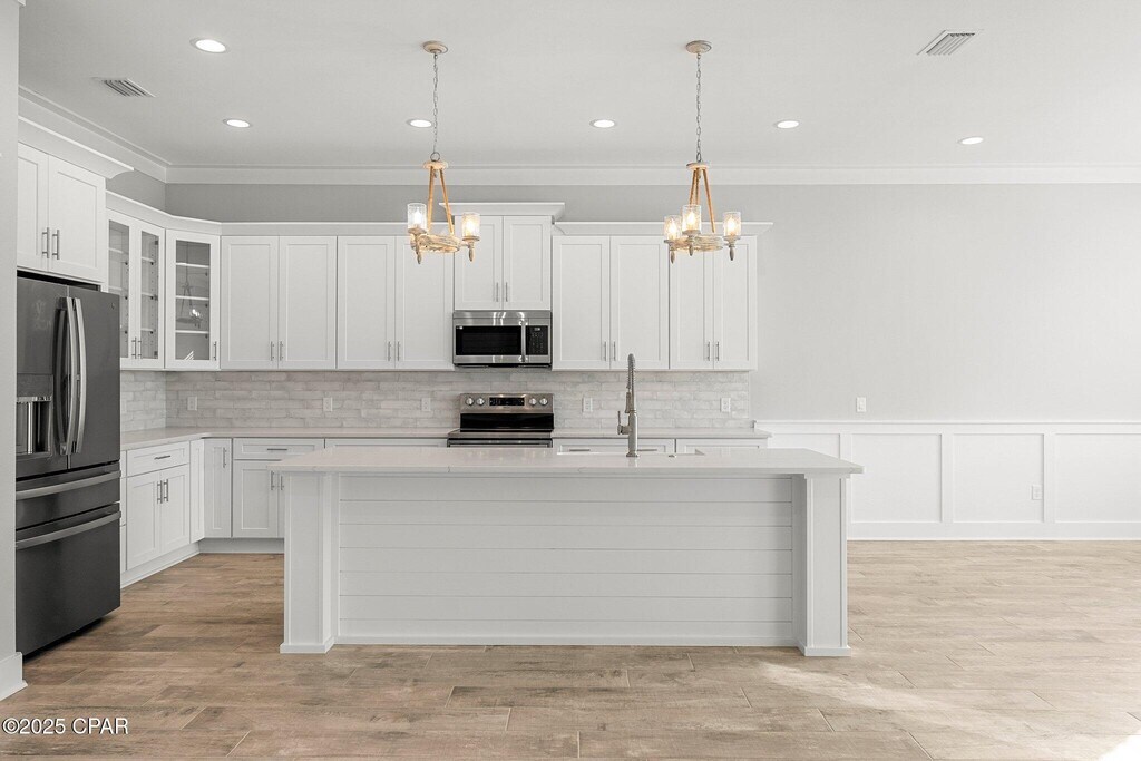 Gorgeous 4-bed, 3-bath town house on the West End of Panama City Beach in the gated community of ''Laguna Haven''. This home boasts modern amenities including soft close cabinets, quartz countertops, Samsung appliance package, tiled walk-in showers, electric fireplace, etc. The first floor offers flexibility with an office/secondary bedroom, while the second floor features a luxurious primary bedroom and two additional bedrooms with a shared bath. Enjoy natural light throughout, keyless entry, one car garage and a paved backyard with a custom pergola. Just minutes from the public beach, close to Frank Brown Park, Pier Park, local restaurants, this is coastal living at its finest. Embrace the allure of contemporary living in this brand-new construction, where every detail speaks of modern elegance and experience a lifestyle of comfort at 201 N San Souci Street.
