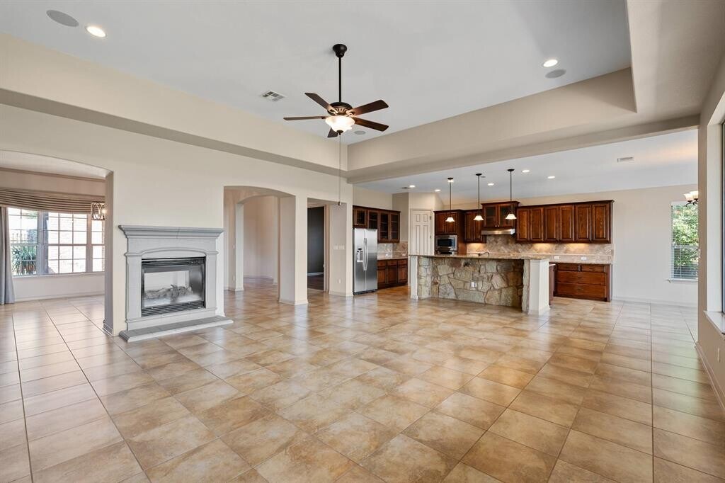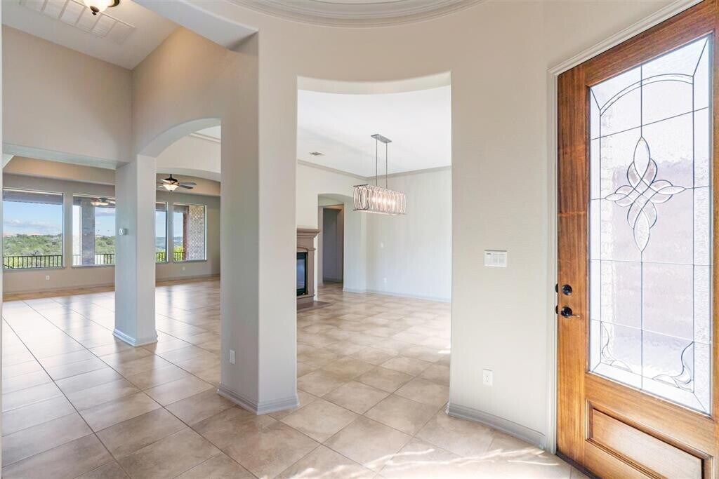 This stunning residence offers breathtaking Hill Country and distant water views, backing to a peaceful greenbelt for maximum privacy and serenity. From the moment you arrive, you’ll be greeted by a gated courtyard with a charming sitting area that sets the tone for the elegance within. Inside, you’ll find gorgeous stone tile and wood floors throughout, a dual fireplace warming both the dining and living rooms, and an open, light-filled layout perfect for both entertaining and everyday living. The home features four spacious bedrooms plus a dedicated office, and the oversized covered back deck overlooks a beautifully landscaped yard designed for relaxation and enjoyment. The primary suite is a true retreat, complete with a custom oversized walk-in closet designed by Closets by Design. Additional highlights include a Generac 26KW natural gas-fueled generator—providing full-home backup power so you’ll never be without electricity—as long as natural gas service remains active. Steiner Ranch residents enjoy world-class amenities including a clubhouse, pools, golf course, sport courts, parks, and miles of walking, biking, and hiking trails. Conveniently located just minutes from Lake Austin and Lake Travis boat ramps, with shopping, dining, and entertainment nearby, and only 30 minutes to Downtown Austin. This meticulously maintained home truly has it all. A must-see!