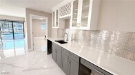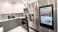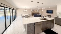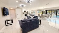 Newly remodeled and upgraded pool home features a light-and-bright layout,seated on a quiet Fort Myers Beach canal. • 4 bedrooms,3 bathrooms with a split floorplan for the utmost privacy • Luxe,oversized tile flooring,countertops and elegant,modern,upscale lighting • All bathrooms feature luxe,walk-in rainfall showers • Oversized master suite features large picture windows,oversized walk-in closet and full bathroom with walk-in rainfall shower • Heated pool and screened-in patio area overlooking a quiet canal,as well as a private outdoor shower • Garden path that leads down to the dock and boat lift • Fully upgraded kitchen with the latest appliance technology,including a "smart fridge" • Open dining area with modern glam dining table that comfortably seats six • Large pantry for storing all of your family's snacks and seasonings • Open living area with oversized smart TV • Extended wet bar with additional storage • Built-in desk with window overlooking the canal • Laundry room with brand new washer and dryer,located in a separate area of the home,next to large two-car garage. This home can comfortably sleep eight,and the perfect size house for entertaining large gatherings with friends and family.