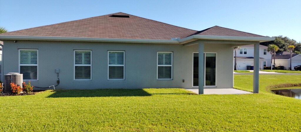 BEAUTIFUL LAKE FRONT RENTAL!!! This is a very rare setup with this gorgeous New 3/2/2 CBS home with a lot of space, and access to the beautiful development pool. Home is fully technology equipped with the option of using an app to control mounted cameras, thermostat, garage door, front lights and front door. This home offers Tile throughout except bedrooms, New appliances, Washer & Dryer, Covered back patio over looking the Lake , Plantation shutters on all windows, 2 car garage, Hurricane protection & security lights. Come enjoy the nature this property has to offer.