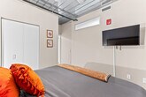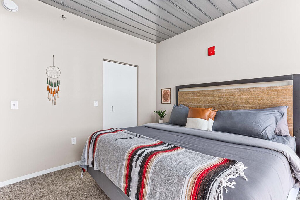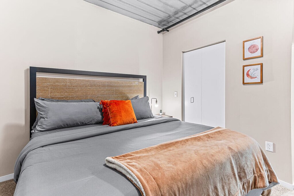 Enjoy a stylish stay and feel at home in this modern apartment near Kerrytown Concert House in Ann Arbor. This apartment is ideal for music lovers and visitors. This apartment offers contemporary decor, a fully equipped kitchen, comfortable living spaces, central AC and heat, lightning-fast Wi-Fi, and smart TVs in every room. There is 1-bedroom with a king-size bed and en suite bathroom and a second bedroom with a full bathroom just steps away. An in-unit washer and dryer are included. One free parking pass is included for the apartment building's attached garage. A community fitness center and a top floor Sky Clubroom with grill and patio are available. This apartment is in the historic Kerrytown district of Downtown Ann Arbor, known for its charming shops, eateries, galleries, and vibrant community. It's close to landmarks like the Ann Arbor Farmers Market and Kerrytown Concert House. The University of Michigan campus is just half a mile away, making it popular among students and faculty. You can easily walk to Downtown Ann Arbor with its shops and restaurants, and there are parks like Huron River and Nichols Arboretum nearby. Public transportation options are readily available, including bus routes and an Amtrak station. It's a diverse, inclusive neighborhood with a strong sense of community and rich cultural heritage. Quiet hours are from 10 pm to 6 am. Please be respectful of our neighbors and keep noise levels down. No parties and no smoking are allowed in the property, and there is a $1000 fine for violations. No pets are allowed. Includes two dedicated workspaces. [SI]