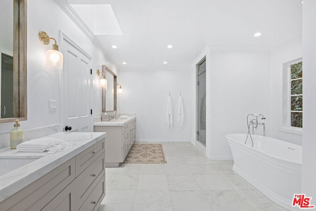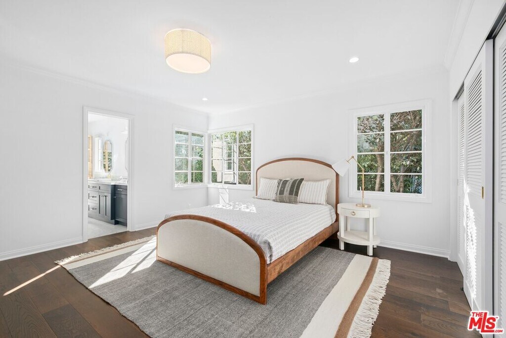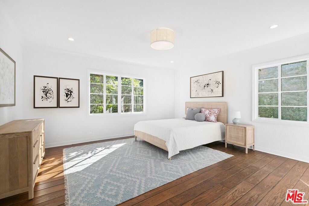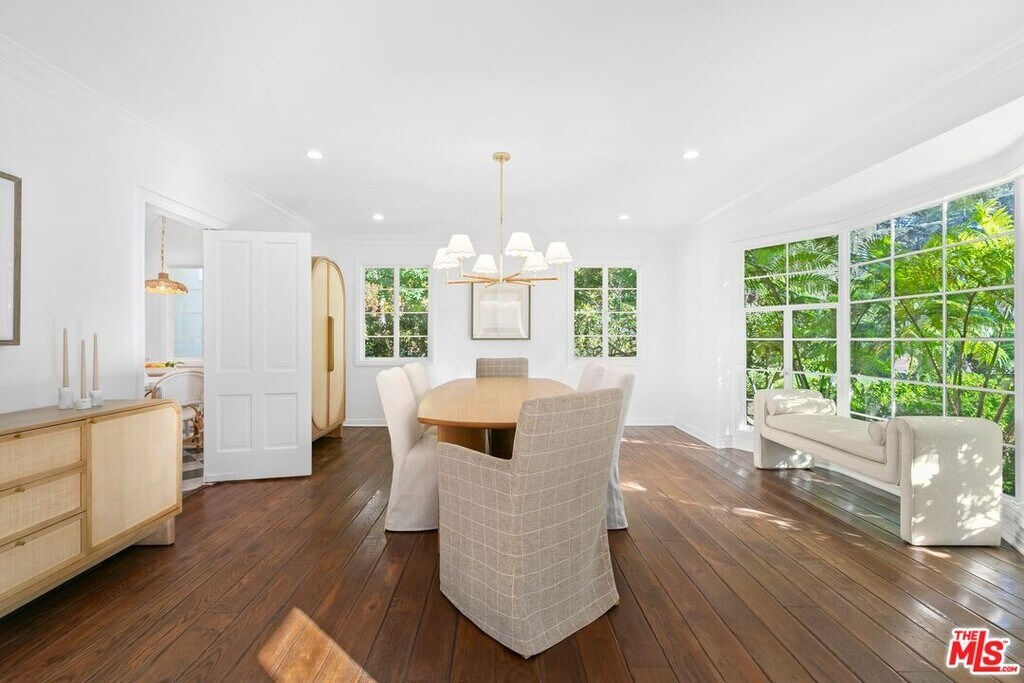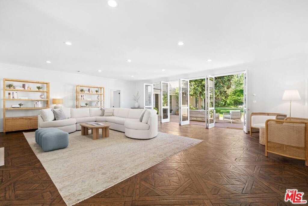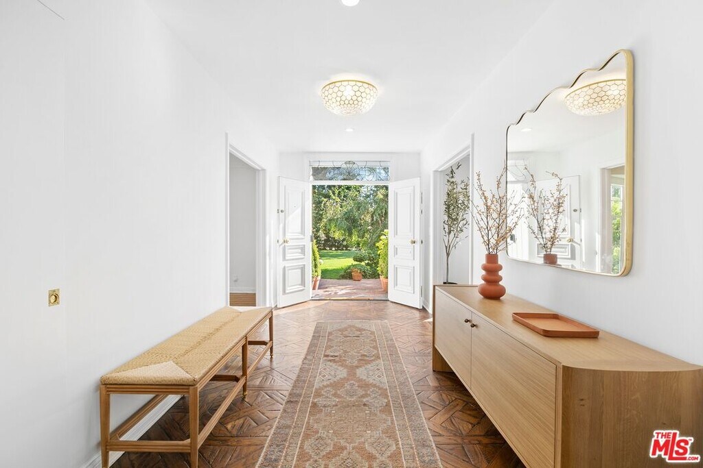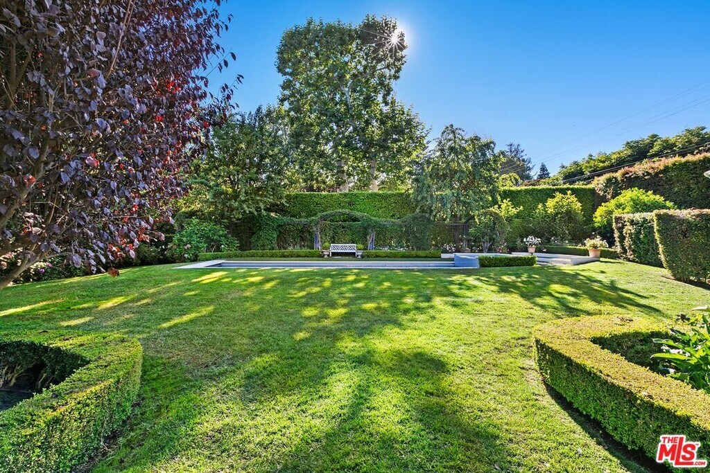 An exquisite estate nestled in the heart of Brentwood Park, one of the most sought-after neighborhoods on the Westside. This home sits on close to an acre of lush landscaping, creating a serene ambiance that invites you to experience luxury living at its finest. The elegant front facade features ancient magnolias and a sprawling 125-foot rolling lawn. Step inside to find chic living and dining rooms adorned with sunny bay windows that frame views of the expansive front gardens, along with vintage hardwood floors that exude warmth. A stunning great room showcases French doors with vintage European metal hardware, seamlessly connecting to a vast brick patio. The backyard, shielded by towering ficus trees, offers a haven of privacy. Take in breathtaking views of the lush, sprawling grounds, complete with a refreshing lap pool, a rejuvenating spa, and a verdant grassy expanse adorned with hundreds of rose bushesthe epitome of relaxation, with ample space for alfresco dining, lounging, and entertaining. Three generous en-suite bedrooms occupy one wing, with the primary suite featuring a cozy fireplace, tall windows, and glass doors that capture views of the meticulously manicured gardens. A two-car garage is complemented by a spacious driveway that comfortably accommodates three additional vehicles. Situated near the Brentwood Country Mart and Brentwood Country Club, this prime location effortlessly combines tranquility with urban convenience. Property comes fully furnished. Available Summer 2026. MLS# 26670231