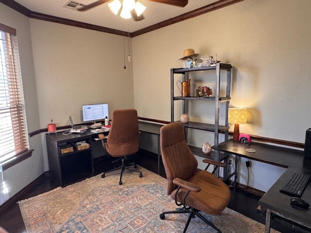 Welcome to this stunning 3-bedroom, 2-bathroom home located in the heart of Oklahoma City, OK. This property boasts a range of high-quality amenities including a fenced yard, a covered patio, and an office area, perfect for those who work from home. Safety is a priority with a built-in storm shelter for peace of mind. The interior features beautiful wood floors and granite countertops, adding a touch of elegance to the open floor plan. The spacious 3-car garage provides ample storage and parking space. The property is located within the highly-rated Moore school district, making it an ideal location for educational opportunities. The neighborhood also offers a playground, perfect for outdoor activities. Additionally, the property includes a shop with electric, offering a versatile space for hobbies or additional storage. This home truly offers a blend of comfort, convenience, and luxury.