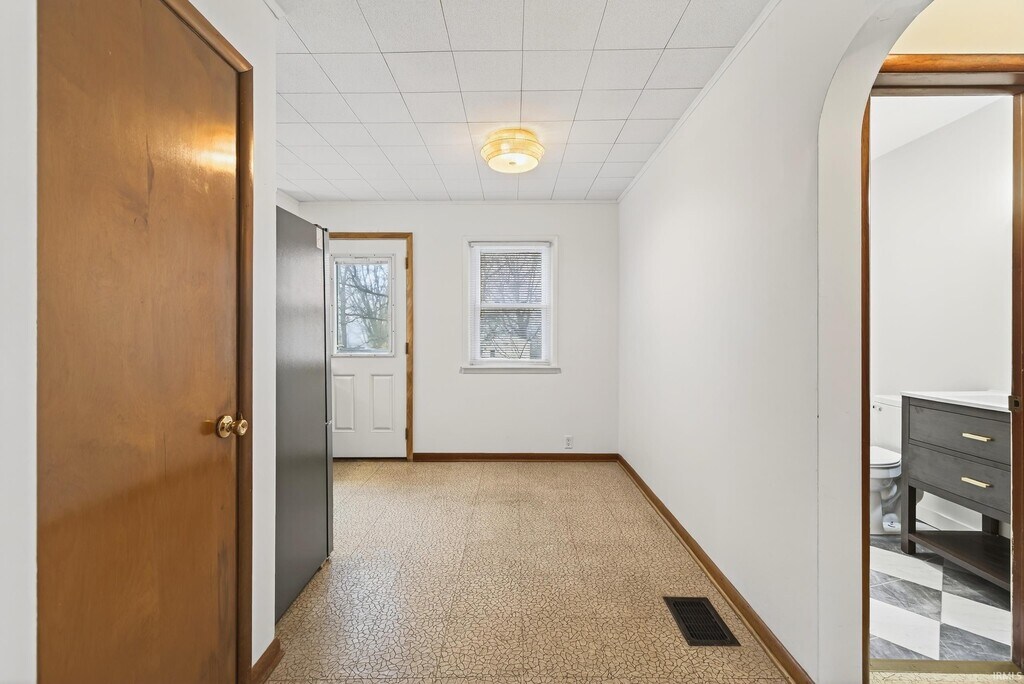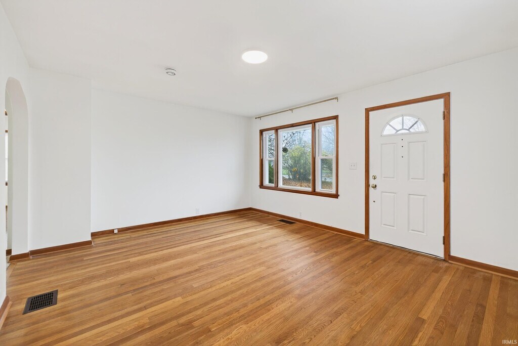 Discover a rare rental gem - a charming 4-bedroom, 1.5-bath Cape Cod nestled on a private 1-acre lot on Bloomington's south side. This house offers both a great location and a very private home. This residence blends retro-inspired style with modern comforts, creating a warm, inviting space that's hard to find. The main floor features a cozy living room, dining room, kitchen, two spacious bedrooms, and a full bath with checkered board flooring and stunnign wood vanity. The house is bathed in warm white walls, natural light, and rich wood floors through out. The kitchen shines with a white subway tile backsplash, sleek chrome finishes, rattan light fixtures, and Stainless Steel appliances - dishwasher, fridge, and stove. Upstairs, two bedrooms offer peaceful retreats, paired with a retro-chic half bath with limewash blue accent wall that adds playful charm. Enjoy the convenience of Smithville Fiber for seamless connectivity, HVAC with gas furnace for energy efficiency, a digital smart lock for security, and an included washer and dryer in the basement. The expansive basement is a standout, perfect for hobbies, storage, or a home gym, complemented by an attached one-car garage. With septic system limits, this home accommodates up to four residents. Tenant is responsible for all utilities, lawn care and snow removal. One small dog under 40 lbs permitted with pet deposit, pet fee, and monthly pet rent. No aggressive breeds permitted. Located just minutes from I-69 for quick access to Crane or IU, a short walk to Clear Creek Elementary, Southside Kroger, and the Clear Creek hiking or biking trails, with downtown a straight shot north, and IU Health or the east side just 17 minutes away. This rental offers unmatched privacy and comfort with a convenient location. This Bloomington treasure won't last long. Listing agent holds ownership interest.