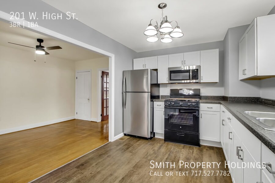 COMING SOON! Are you looking for a beautiful town home in New Oxford school district without an apartment complex feel? Look no further! 201 West High Street has been remodeled and you'll love the character this home provides! This 3 bedroom one bath home features hardwood floors throughout the bedrooms, hallways, stairs, dining room and living room. Enjoy efficient heating / cooling with a gas furnace, replacement windows, and central air. This home features a totally remodeled kitchen, flooring, cabinets, stove, fridge, microwave etc. 201 West High Street in New Oxford offers plenty of storage room, with a full basement (featuring a washer and dryer), and a full attic. Do you like outdoor space? You'll find a beautiful backyard, with landscape stone and a LARGE garden area!!! Can you picture your garden this spring? What's not to love about this property? The little details like a mud room, attic, basement, outdoor space, hardwood floors etc. really make this property special! LOCATION - LOCATION - LOCATION - very convenient a simple 5 minute walk to the coffee shop in center square. Come enjoy all this home has to offer! NO DOGS - NO SMOKING - MINIMUM CREDIT SCORE 635 - MINIMUM HOUSEHOLD INCOME 3X MONTHLY RENT