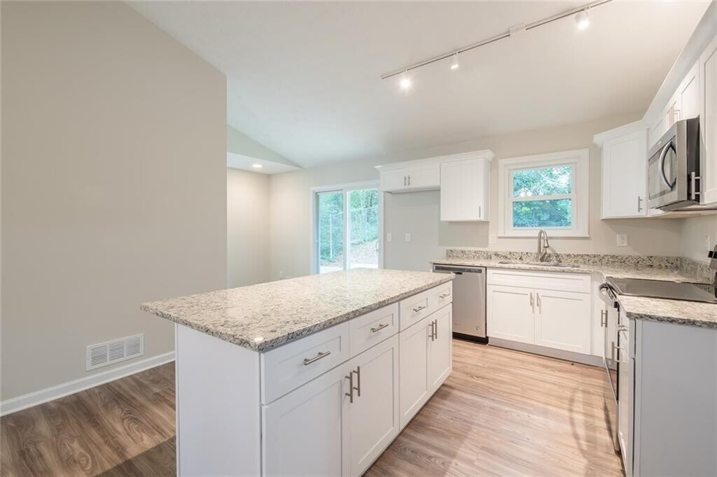 This beautifully updated 3 bedroom 2 bathroom ranch home features extensive renovations throughout,including new cabinetry and countertops,new flooring,bathrooms,and fresh,neutral paint. The open-concept floor plan is perfect for everyday living and entertaining,complemented by spacious bedrooms and a nicely sized lot. New carpet and new appliances add to the move-in-ready appeal. Conveniently located within walking distance to Lake Lanier,shops,and restaurants. Eagle Creek Shores is just minutes from Costco,shopping,dining,and entertainment. This is a true gem you don't want to miss! MLS ID 7711198