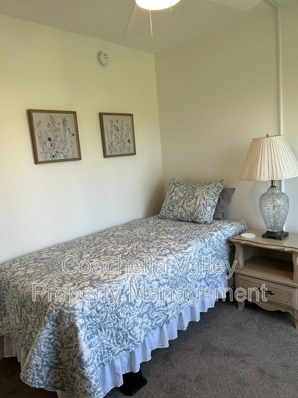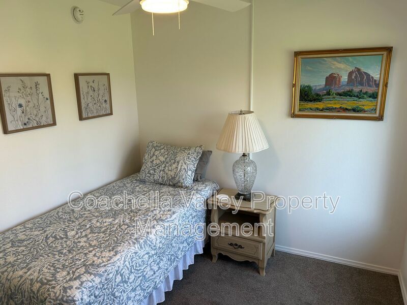 Welcome to this lovely 2 bedroom/2 bathroom seasonal property nestled in the highly desirable Mountain Shadows gated community in Palm Springs! Located on the end of a quiet cul-de-sac with stunning views of the San Jacinto Mountains and Tahquitz Creek Golf Club, this one-story condo offers the perfect blend of comfort, convenience and quintessential Palm Springs lifestyle. With two spacious bedrooms and 1.5 bathrooms, it provides ample space for a comfortable stay. There are also three separate patios around the condo to enjoy. One of the standout features of this condo is that cable internet is included, ensuring you stay connected for work or entertainment purposes. The condo is also pet-friendly, allowing one dog. Mountain Shadows is a beautifully landscaped complex with resort-like grounds that includes six sparkling pools, a spa, along with tennis, & pickle-ball courts. Conveniently located near shopping & dining, Mountain Shadows offers easy access to wonderful amenities. Golf, hiking, biking, theater, & the renowned Acrisure Arena & McCallum Theater are all within reach. For those who commute, the condo is conveniently located near Highway 111 as well. Experience the best of Palm Springs living at this seasonal getaway. Please call Xepco Properties at to schedule a showing. Deposit is one month's rent Balance of rent due 60 days prior to arrival. $495 Nonrefundable Cleaning fee $275 Service Fee All Applicants must have the following: No Prior Evictions No Previous Felonies Amenities: Gated Community, Community Pool, Close to Downtwon Palm Springs, Close to Restaurants, Close to Hwy 111, Close to Shopping, Close to Park, cable internet included, Comnunity Spa, 1 Dog Allowed, no cats allowed