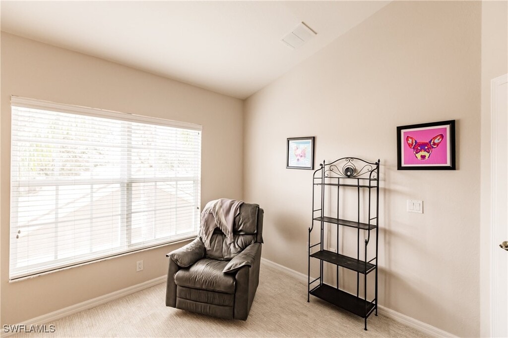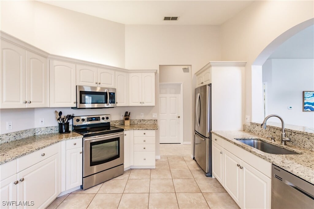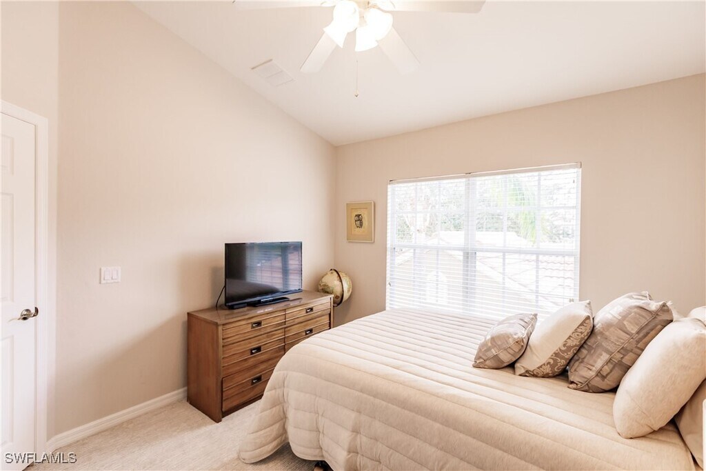 Fresh and clean second floor end unit with A TRUE THIRD BEDROOM! Not just a den you can use as a bedroom when guests arrive. This unit is truly unique and has been beautifully maintained. New carpet throughout,granite countertops and stainless appliances in the kitchen. Neutral colors. Eastern exposure with a view of the 7th fairway. Short walk to the Sabal Palm community pool and main Grandezza Clubhouse with resort-style amenities.