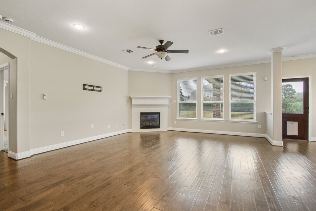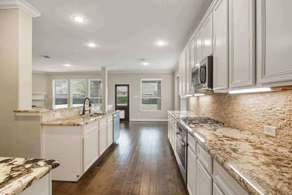 This exceptional rental opportunity on a premier corner cul-de-sac lot combines high-end finishes with everyday convenience. The home features a sought-after open floor plan with wood floors,recessed lighting,and a grand two-story entry. The centrally located kitchen is perfect for entertaining,featuring a large granite island and breakfast bar that opens directly to the den. A flexible front study with French doors offers the perfect space for a home office or a fifth bedroom. Comfort is guaranteed in the primary suite,which includes a private bay window and a luxury bath with a walk-in shower and jacuzzi-style tub. This home is designed for effortless living with a tankless water heater,a gas log fireplace,and a Rachio smart sprinkler system to maintain the oversized backyard. Enjoy your evenings on the extended covered patio,or take advantage of the Falls at Dry Creek’s amenities,including the recreation center,party room,and scenic walking trails. MLS# 54791747