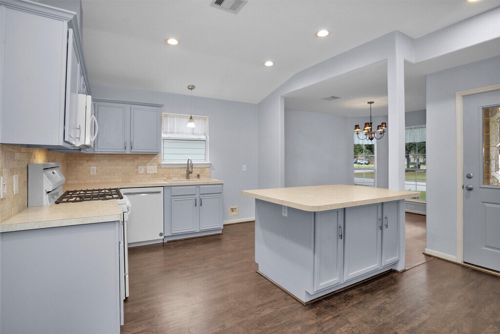 This updated 3-bedroom,2-bath home delivers easy living in a prime location with quick access to Hwy 249 & the Grand Parkway. Inside,elevated ceilings and fresh LVP flooring create a bright,open feel that flows from the spacious living room—with a cozy corner fireplace—to the large kitchen featuring custom-painted cabinets,neutral tile backsplash & plenty of counter space. The primary suite includes a walk-in closet,soaking tub & separate shower for everyday comfort. A newly replaced HVAC system w/ built-in air purifier keeps the air clean & utility bills low year-round. Step outside to a covered patio overlooking a private backyard w/ no back neighbors—perfect for morning coffee or weekend cookouts. Neighborhood park is directly across the street for added convenience. MLS# 75123805