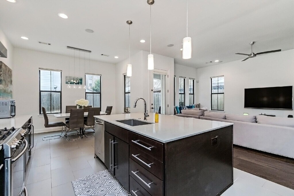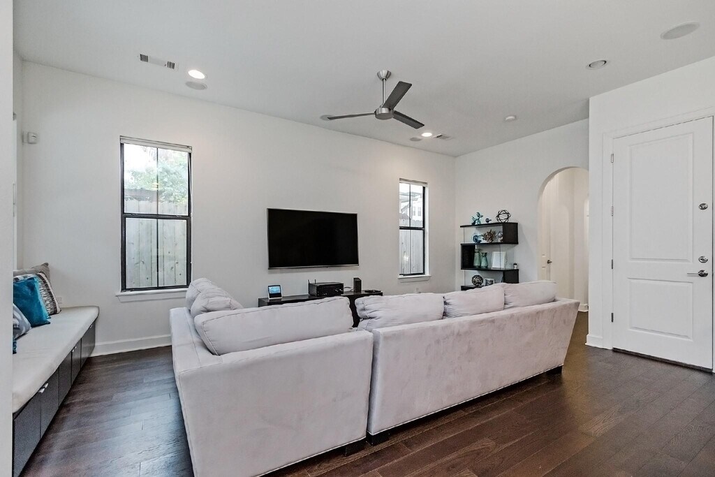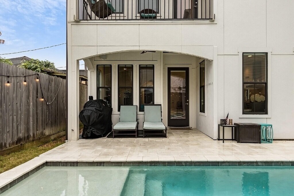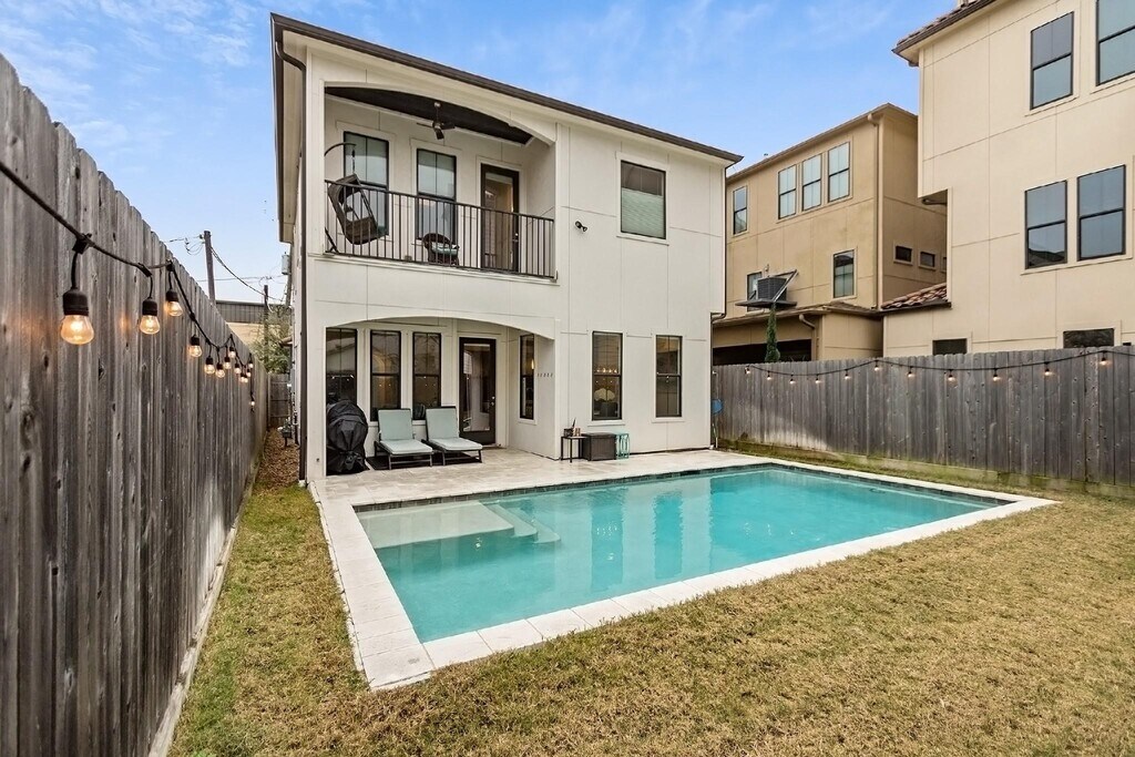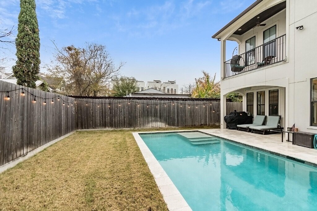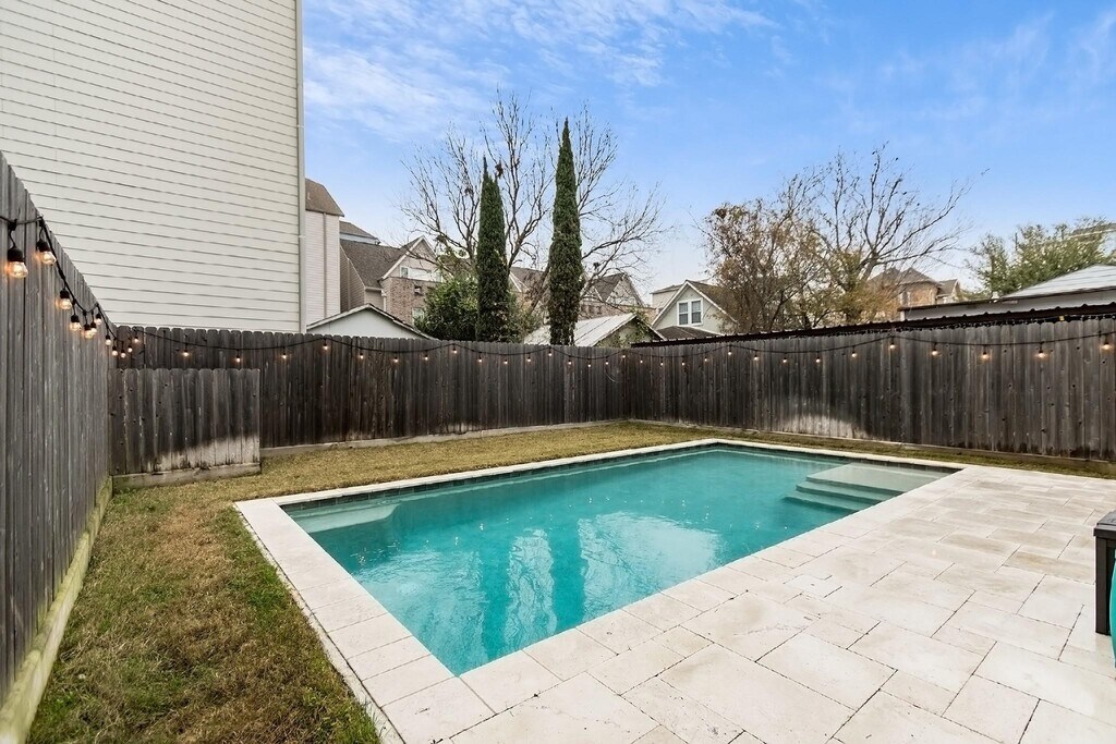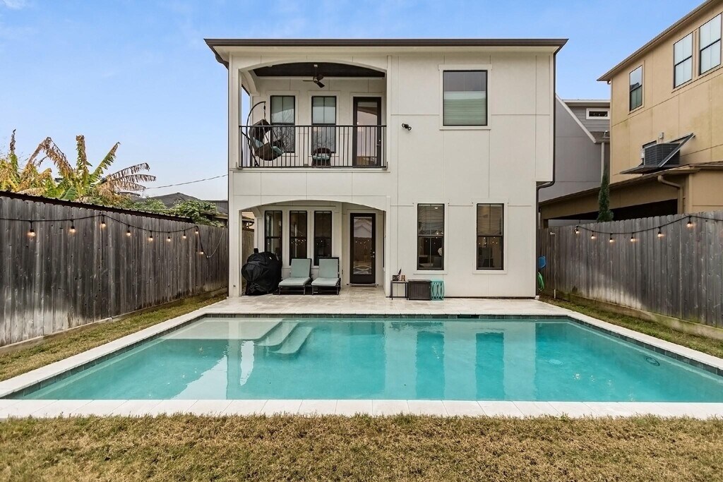 Beautiful and light-filled 3BR/3.5BA custom home in Houston’s vibrant First Ward Arts District,featuring a sparkling pool,baja shelf,and spacious backyard—a rare find in this area! Enjoy quartz countertops,dark oak floors,10-ft+ ceilings,stainless appliances,beverage fridge,and 5.1 surround sound speakers in both the living room and primary suite. The massive primary walk-in closet,soaking tub,dual showerheads,and balcony overlooking the pool create a true retreat. Refrigerator,washer,and dryer are included,plus a new AC (2025) and EV charger in the garage. Just off the Spring Street Hike & Bike Trail,minutes from Sawyer Yards,downtown,I-10,and Memorial Park. Pool maintenance included—the only thing missing is you! Schedule your private showing today! MLS# 52128176