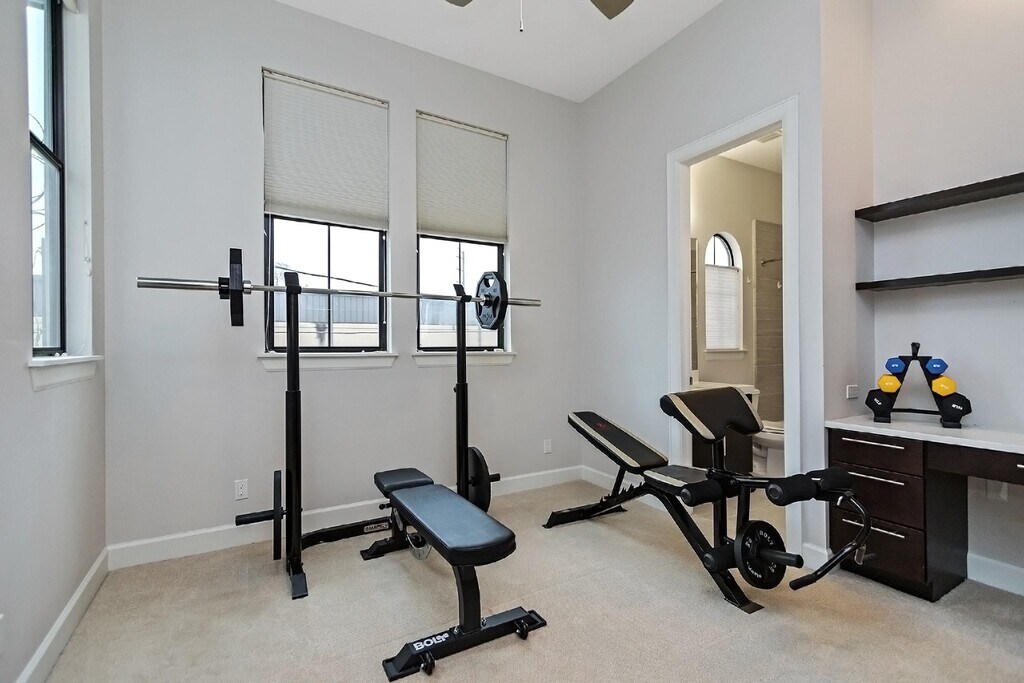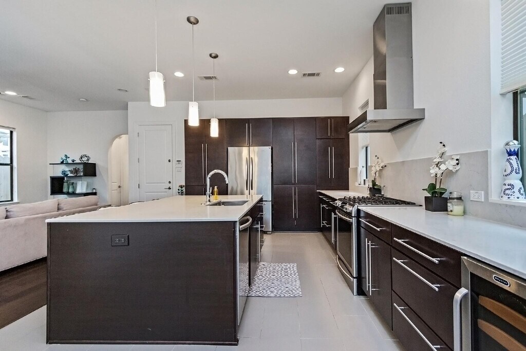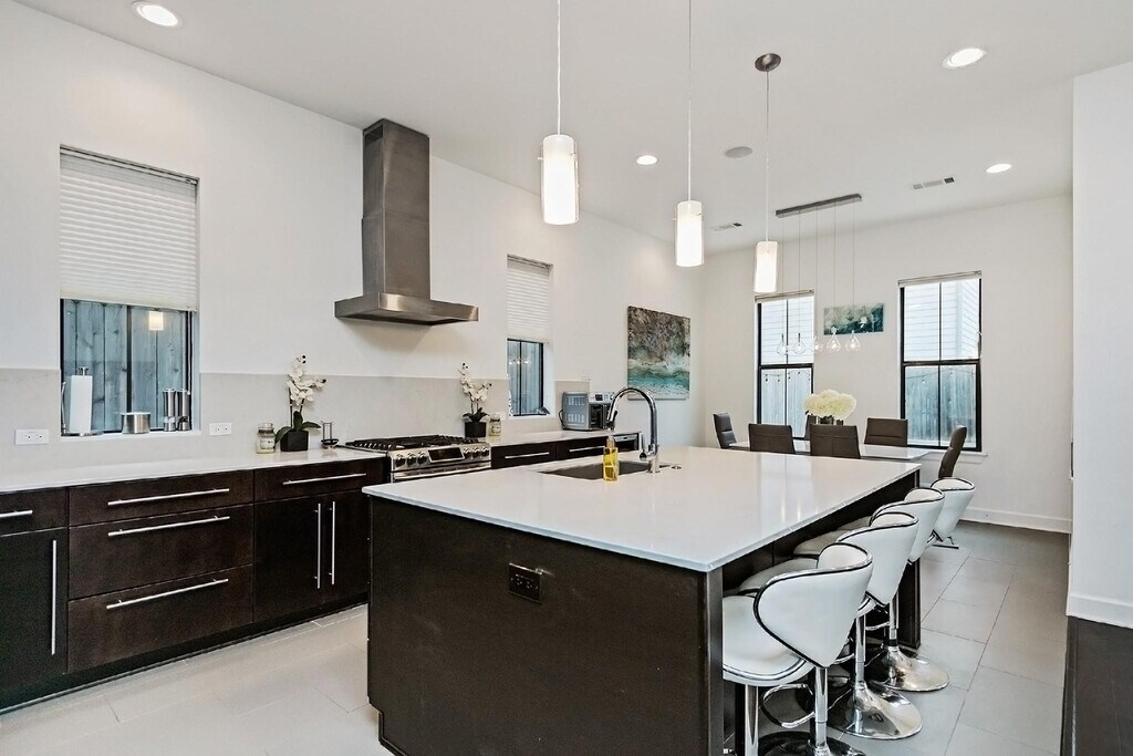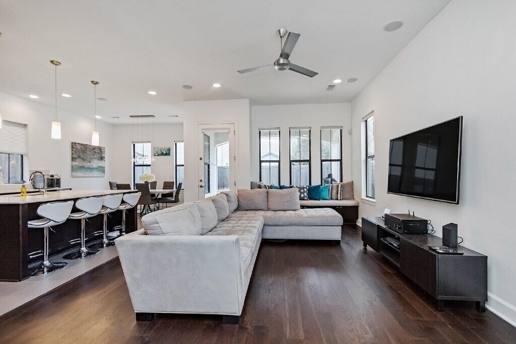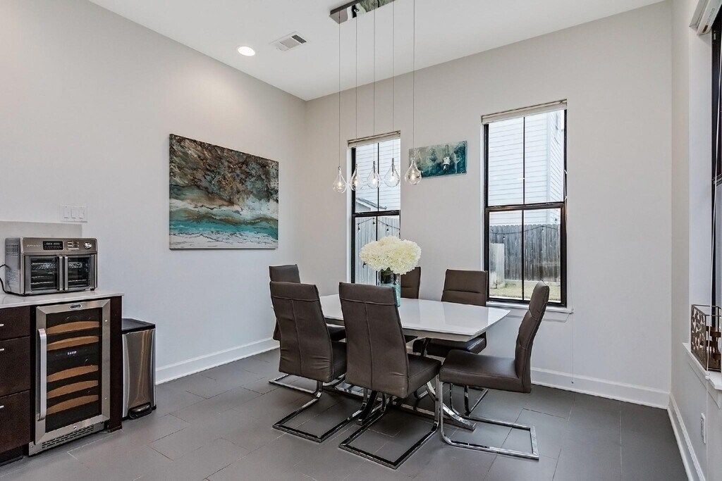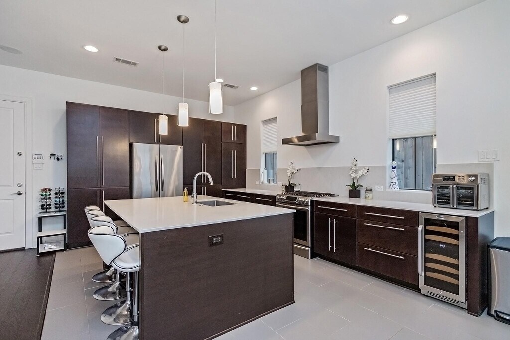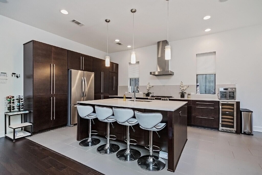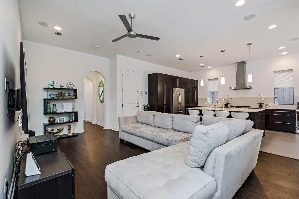 Beautiful and light-filled 3BR/3.5BA custom home in Houston’s vibrant First Ward Arts District,featuring a sparkling pool,baja shelf,and spacious backyard—a rare find in this area! Enjoy quartz countertops,dark oak floors,10-ft+ ceilings,stainless appliances,beverage fridge,and 5.1 surround sound speakers in both the living room and primary suite. The massive primary walk-in closet,soaking tub,dual showerheads,and balcony overlooking the pool create a true retreat. Refrigerator,washer,and dryer are included,plus a new AC (2025) and EV charger in the garage. Just off the Spring Street Hike & Bike Trail,minutes from Sawyer Yards,downtown,I-10,and Memorial Park. Pool maintenance included—the only thing missing is you! Schedule your private showing today! MLS# 52128176