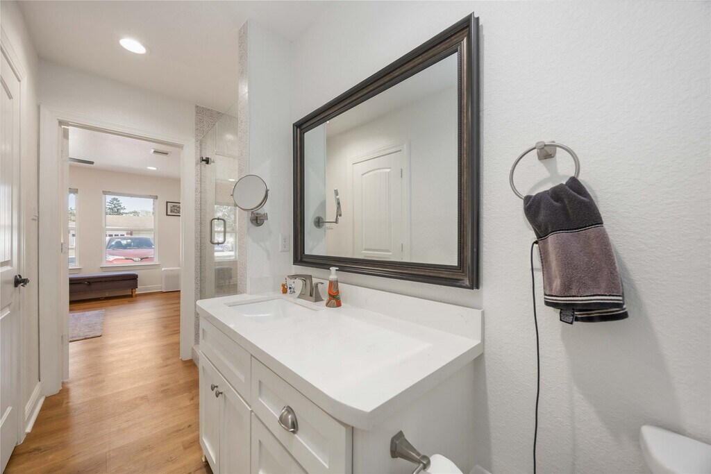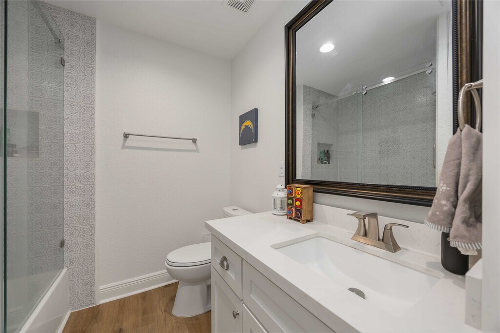 Extensively updated from top to bottom this home has everything! Recent updates include: roof,wiring,double paned windows,new AC,plumbing,fixtures,windows and flooring. NEVER FLOODED! The spacious kitchen includes all stainless appliances and quartz counters. The dining room flows seamlessly to the generously sized family room with vaulted ceilings with large windows overlooking the fully fenced back yard. The far side of the house features three light filled bedrooms,one with its own en suite half bath,along with a hallway bath with quartz countertops. Separated from the three bedrooms on the other side of the home sits the primary bedroom with en suite walk in shower,dual sinks and quartz countertops. Located in one of Houston's finest neighborhoods- enjoy being in close proximity to: hike and bike trail,excellent schools,fine restaurants! This one has it all. Ready to lease immediately! Scheduling your showing today! MLS# 10670606