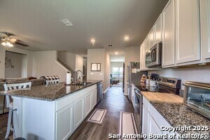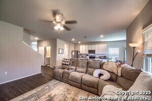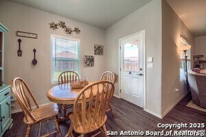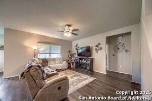Welcome to this beautiful and versatile two-story home featuring four bedrooms, two and a half bathrooms, and plenty of living space designed for comfort and flexibility. The open-concept floor plan connects the living, dining, and kitchen areas, creating an inviting atmosphere perfect for everyday living or entertaining. The primary suite is conveniently located downstairs for added privacy, while three additional bedrooms and a large game room upstairs provide ample space for family or guests. A flex room on the main floor offers the perfect spot for a home office, playroom, or guest suite. Enjoy outdoor living with a charming covered front porch and a spacious covered patio overlooking a nicely sized backyard, ideal for relaxing or hosting gatherings. Located near Highway 35 and Loop 410, this home offers quick access to major employers and attractions, including Toyota Manufacturing, Palo Alto College, Texas A&M University-San Antonio, and Brooke City Base, and is just a short drive to Braunig Lake Park. Don't miss the opportunity to make this well-located, family-friendly home yours-schedule your showing today!