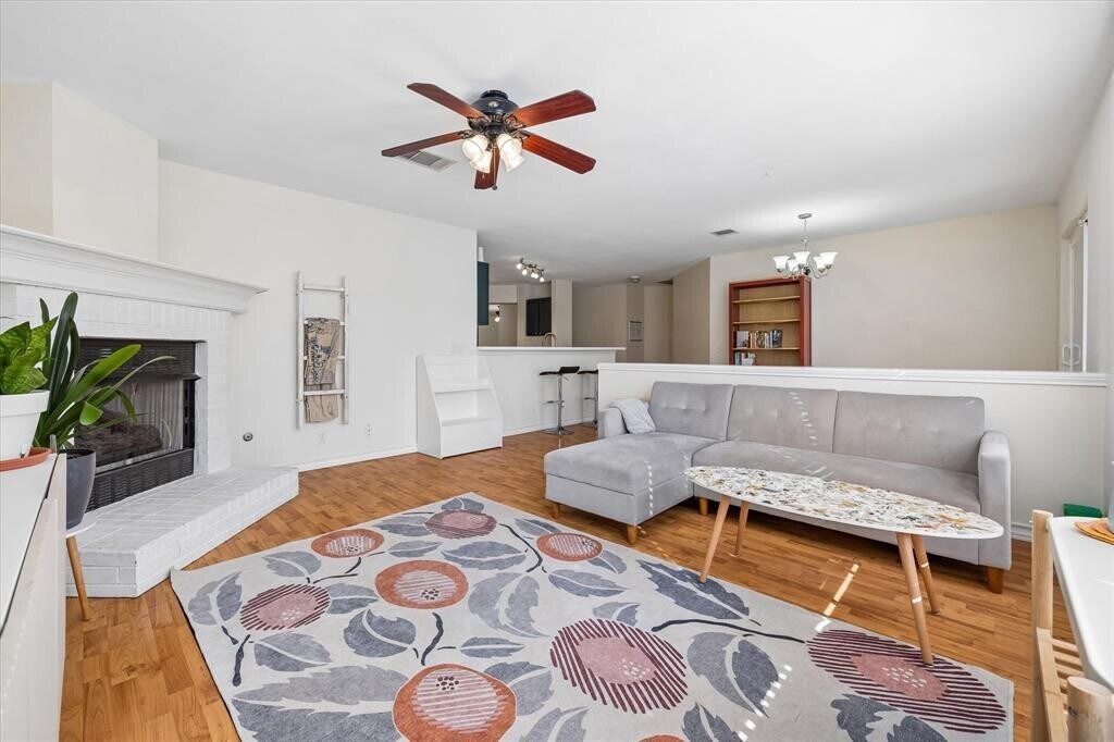 1874 sq. ft. home, 3 bedrooms and an office. Or 4 bedrooms, with large private back yard, large trees, walk to the park, no H.O.A. Enjoy your covered front porch for coffee and relaxation and your covered back patio and large back yard for outdoor fun. Harvest Moon features a private office or 4th bedroom with french door on the front of the house. 3 nice size bedrooms, 2 dining areas, living area, command central kitchen, 2 full baths, and laundry area. All appliances included. Beautiful flooring, in all areas except bedrooms. Kitchen has chair height counter for eating, island, ample countertops and cabinets for storage, open to breakfast and family room. Recent roof, attic insulation, some windows and patio door, well maintained, move in ready. 2 car garage, with opener. 2-minute walk to Milburn Park, hike and bike trails, picnic areas, basketball courts and pool. MLS ID 6686910