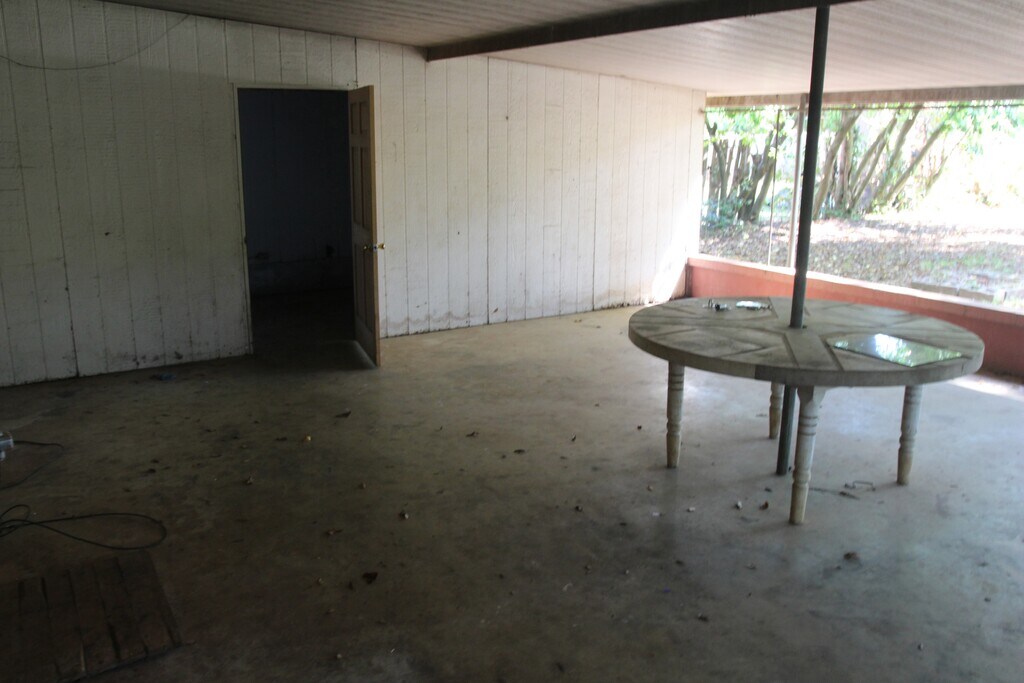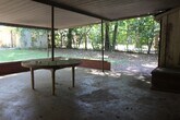 Huge covered back patio with built-in park table,