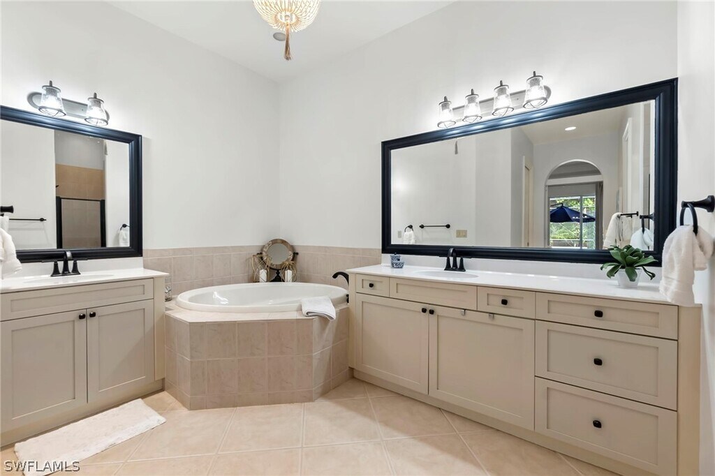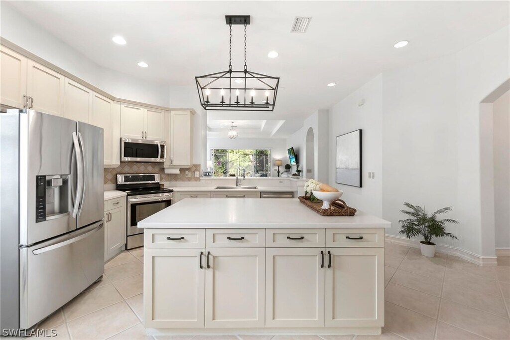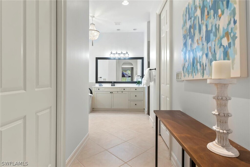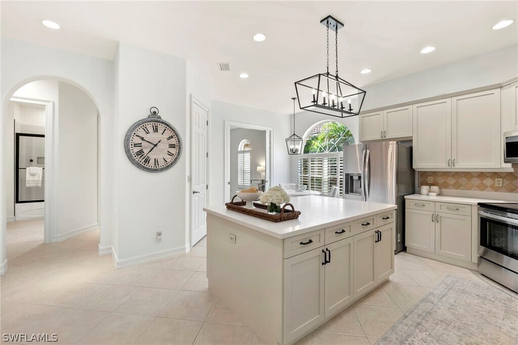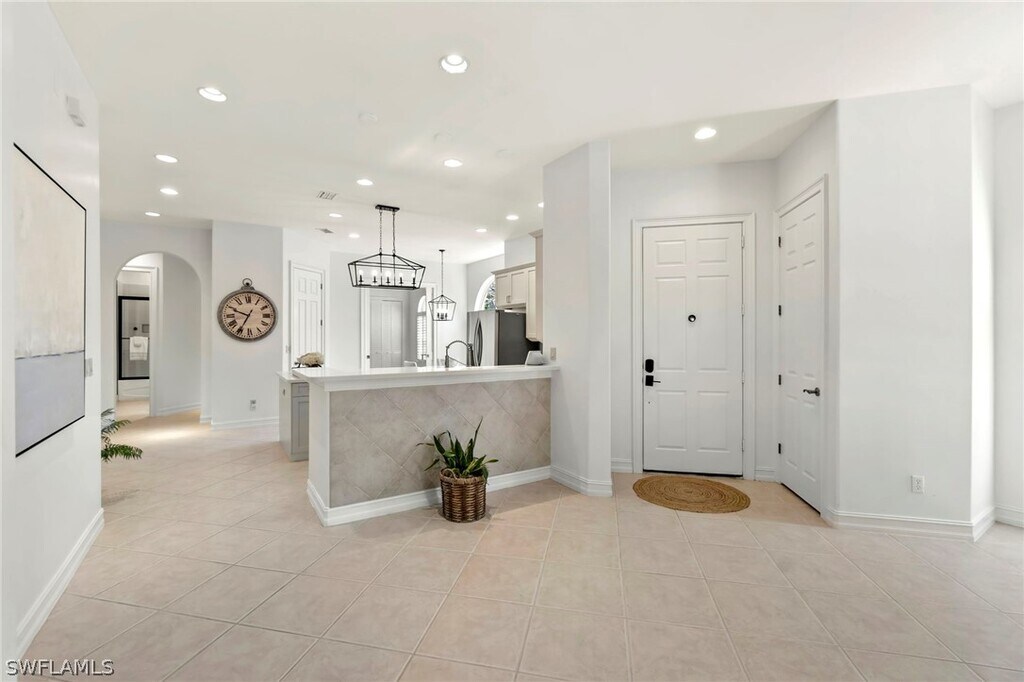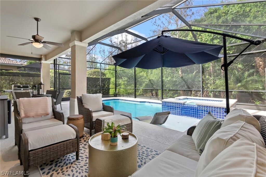 Take a look at this beautifully appointed home located in one of Grandezza Country Club's popular communities,Saraceno! The home features a modern open concept design and a lush pool and spa area for a true tranquil setting. Inside this meticulous kept 3 bedrooms and 2 bathrooms home are updates throughout including large island in the kitchen,oversized primary suite with dual sinks and soaking tub,dining area and a spacious living area that's great for entertaining. Grandezza Country Club offers 18 hole Championship Golf with optional golf membership and a host of activities and amenities to live the resort life! Located minutes from SWFL International Airport,shopping and restaurants.