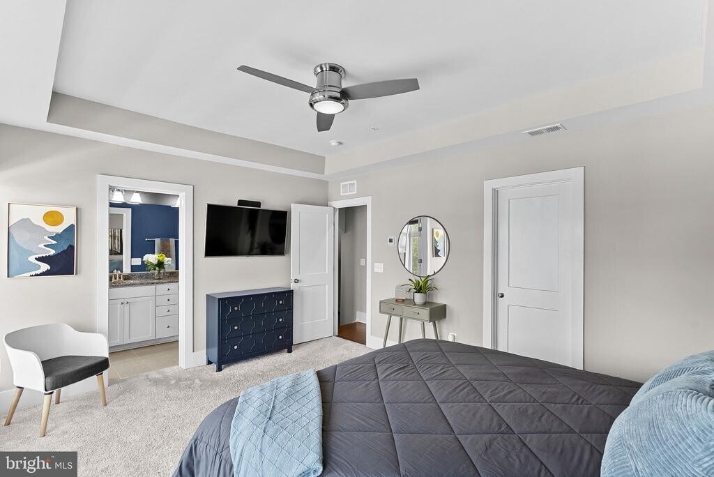 Built in 2018 and approximately 3000 sq ft of finished space, this beautifully upgraded townhome perfectly blends sophisticated style with serene living—just steps from the W&OD Trail and within walking distance to highly rated schools. Step inside to the open-concept design, featuring hardwood floors and premium builder and custom upgrades throughout. The main level showcases a gourmet kitchen with a quartz waterfall island, double ovens, and a vent hood—ideal for both everyday living and entertaining. The living and dining areas flow seamlessly to the balcony, perfect for relaxing outdoors. Upstairs, the luxurious primary suite offers a tray ceiling, walk-in closet, and spa-inspired bath. Two additional bedrooms, an upgraded full bath, and a laundry room complete this level. The versatile loft level provides endless possibilities—with ample space for a media room, office, home gym, or playroom—plus a half bath and a large second balcony. The lower level includes a generous recreation room that opens directly to a tranquil backyard with a paver patio. Additional highlights include a fully finished garage with polyaspartic-coated flooring and a driveway for 2 additional cars. Perfectly situated near the Dulles Greenway (267) and Route 7, this home is just 11 minutes from the Ashburn Metro and close to Leesburg Premium Outlets, shopping, dining, and the new Reservoir Park. Experience modern elegance, privacy, and the best of Ashburn’s vibrant, amenity-rich lifestyle—this exceptional home truly has it all! **Available for immediate occupancy**