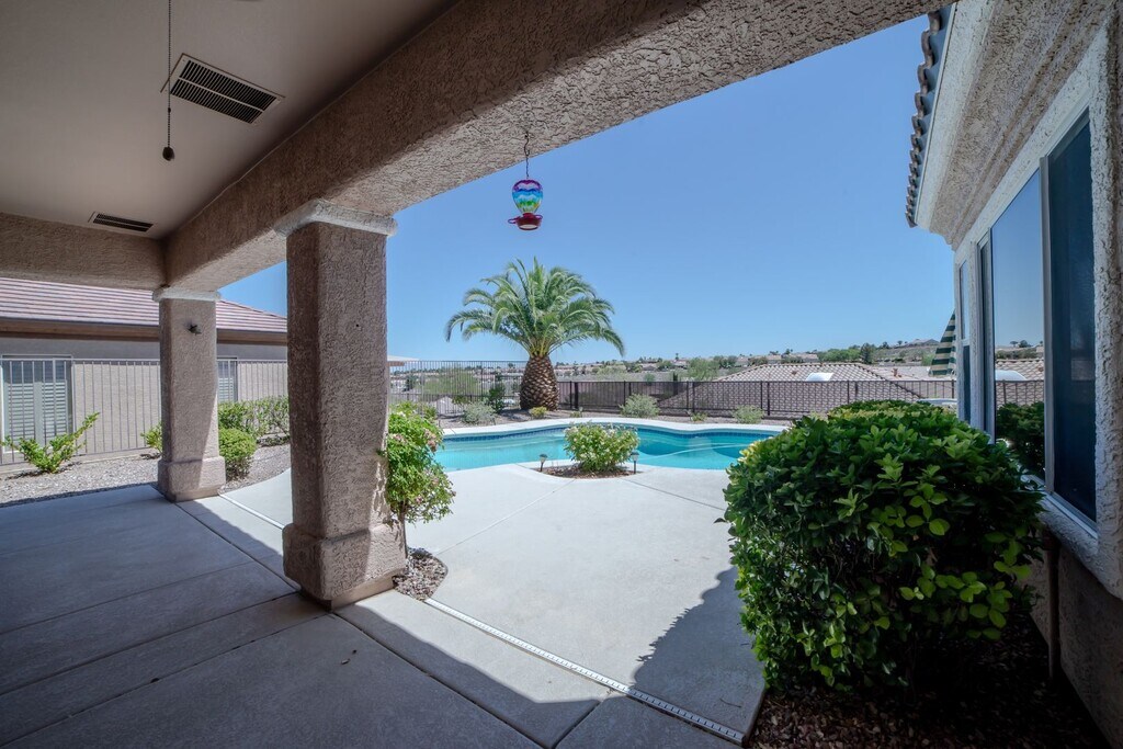 Sun City Anthem!! 55 & Older!! Single Story!! Private Pool!! Strip Views!! 3 bedrooms and 3 car Garage!! Low Maintenance Desert Landscape front and back. Community offers: Pool, Spa, Exercise room, Fitness center, Indoor Pool, Recreation room and Tennis courts. Kitchen: Breakfast bar, Granite counter tops, Cook Top Stove, Built-in Oven, Separate Microwave, Lots of cabinet Space, Upgraded appliances. Primary separate from other bedrooms: Big Walk-in Closet with Custom cabinets, Ceiling fan land light, Bay Windows. Laundry room converted to office space. Water and dryer in Garage. Formal Living room and Dining area. Separate family room with built-in bookcase! Living Room: 16x13 Formal Dining Room: 11x9 Family Room: 14x14 Built-in Bookcase Primary Bedroom: 18x12 Ceiling Fan, Ceiling Light, Custom Closet, 2nd Bedroom 12x10 Ceiling Fan, Ceiling Light 3rd Bedroom 11x10 Ceiling Fan, Ceiling Light Directions: From Volunteer Blvd, exit on Sun City Anthem Dr, turn L on Colvin Run Dr, house will be on L side of the street. Tenant Pays additional: Monthly Garbage Service $20.00 Tenant pays additional $17.00 monthly for AC filter Service. Tenant pays monthly $135.00 for pool service. Total due monthly: $3622.00 Schools: Elementary School; Shirely and Bill Wallin ES 9 month school Middle School; Del E. Web Middle School High School; Liberty High School. Pet Deposit $500 Per Pet. Pet rent $10.00 To apply for pets: Tenant Pays $125 Lease preparation fee. Screening Criteria: Minimum 600 Fico Score. Income 3 times the rent. Landlord reference: No Evictions or owe a balance to another property Manager or landlord. For Showings call Carlee at Mark Lister Property Manager Nevada Superior Properties 900 E. Charlston Blvd. Las Vegas, NV 89104 Website: Cell # Lic #S.045930 Permit #.045930