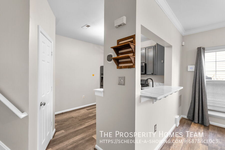 Multi-level townhome-style home located in a quiet Odenton community with a traditional brick and siding exterior and private front entry. Parking is conveniently located just steps from the door. The main living level features an open layout with wide-plank flooring, crown molding, updated light fixtures, ceiling fans, and consistent natural light throughout. Large windows and a bay window provide brightness while maintaining privacy. The kitchen has been updated with quartz countertops, stainless steel appliances, modern cabinetry, and a pass-through breakfast bar that keeps the space open and functional. The home’s multi-level design offers separation between living and sleeping areas, making it well-suited for work-from-home needs, guests, or shared living arrangements. Neutral finishes throughout create a clean, move-in-ready feel. Conveniently located near Fort Meade, MARC train service, major commuter routes, shopping, and dining.