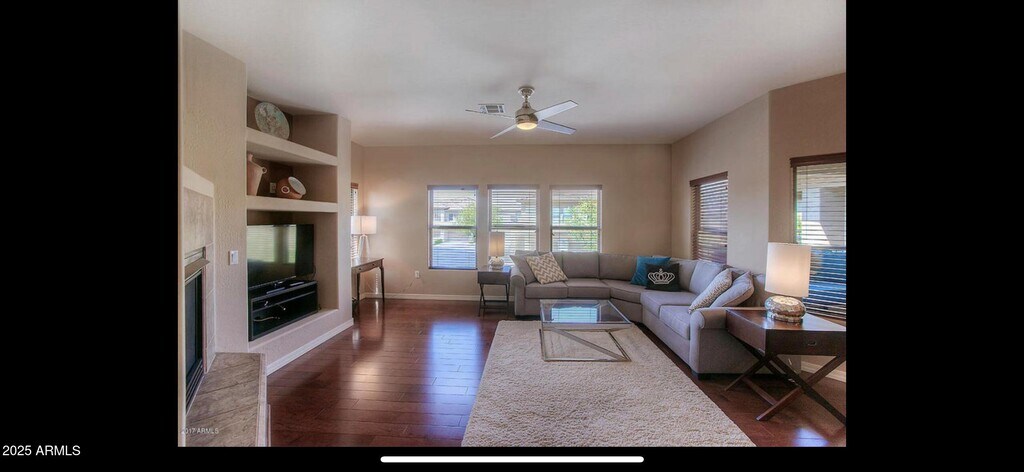 Updated and well-kept townhome in the highly sought after,gated community of Vintage at Grayhawk. Spacious open floorplan with updated light fixtures and ceiling fans,hardwood floors throughout the great room,kitchen and hallway. The family room has built-in entertainment wall shelving,a gas fireplace and is full of natural light from many windows. The kitchen boasts granite countertops,stainless steel appliance package,a lot of cabinet space and conveniently located laundry closet. The Owner's suite features plantation shutters,a large walk-in closet,and an ensuite bathroom with dual sinks and walk-in shower. There is a private balcony off the dining room to view blue skies for miles,a guest bedroom with plantation shutters and full hallway bathroom.