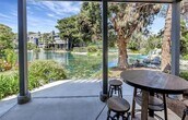 Enjoy resort-style living in this bright and peaceful 1 bed/1 bath condo. Tucked inside a beautifully landscaped, gated community with 24-hour security, this home offers both comfort and peace of mind. Step inside to a spacious living area with a bright layout, cozy fireplace, and serene lagoon views right outside your private patio. The kitchen features upgraded ocean-blue cabinetry, granite countertops, and stainless steel appliances—including a gas stove and refrigerator—ideal for cooking or entertaining. The large primary bedroom easily fits a 5-piece set and connects to a bright bathroom with an oversized shower/tub combo and a massive walk-in closet. Convenient in-unit laundry with stacked washer and dryer included. Enjoy your own private 1-car garage, with one additional resident space and guest parking right outside. Community amenities include pools, spas, tennis courts, a dog park, clubhouse, and lush walking paths throughout the tree-lined grounds.