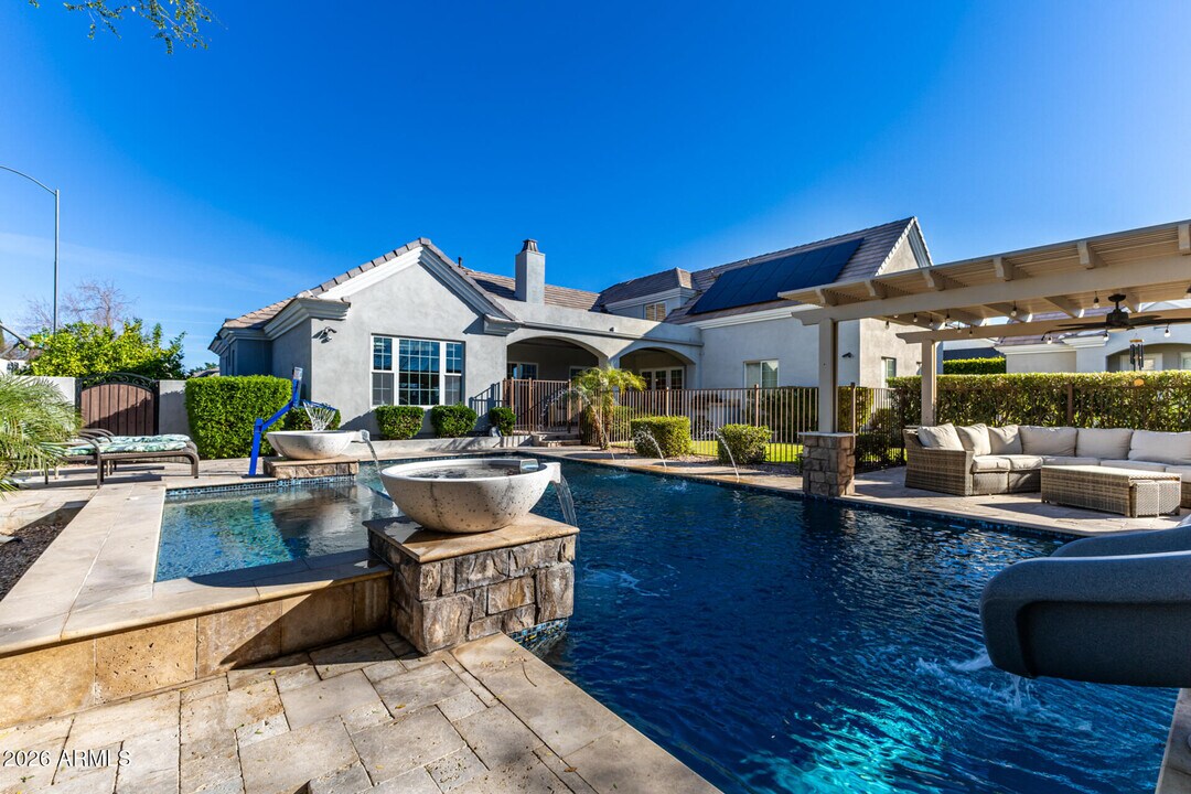 Nestled on a PRIME corner lot! This spectacular rental estate seamlessly blends timeless elegance w/modern luxury. It showcases a 3-car garage,stone accents,& professionally landscaped grounds that elevate its curb appeal. Sophisticated interior showcases clean lines that favor a sleek & functional design paired w/stylish light fixtures,wood-look flooring,ceiling fans,surround sound,bountiful natural light,& an inviting living room ideal for receiving guests. Harmonious great room is the true focal point,highlighted by a cozy fireplace that adds warmth & character. Gorgeous kitchen is a chef's delight,fully-equipped w/a plethora of cabinets topped w/crown moulding,a walk-in pantry,tile backsplash,high-end SS appliances,granite counters,& a large prep island w/a breakfast bar. Grand owner's retreat offers plush carpet,direct outdoor access,a lavish ensuite,& a walk-in closet. HUGE loft makes the perfect TV area. Venture to your entertainer's paradise,complete w/a covered patio,built-in BBQ,in-ground trampoline,pergola,& a sparkling pool. This outstanding gem has it all!