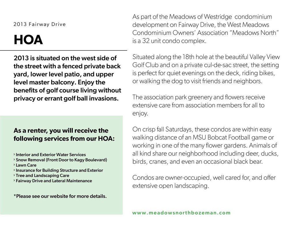 Nestled amidst the serene surroundings of a scenic golf course and mature landscaping, this beautiful 2-bedroom, 2-bath condominium with a loft and 2-car garage offers a perfect blend of comfort, convenience, and natural beauty. Located in the heart of Bozeman, MT, this property provides easy access to local amenities, downtown Bozeman, and a variety of outdoor activities, including direct access to the main trail system. With vaulted ceilings, air conditioning, a skylight, washer and dryer, and a private balcony, this condo offers a range of special features that enhance its appeal. Please note, no cosigners or pets are permitted. Managed by Legacy Properties.