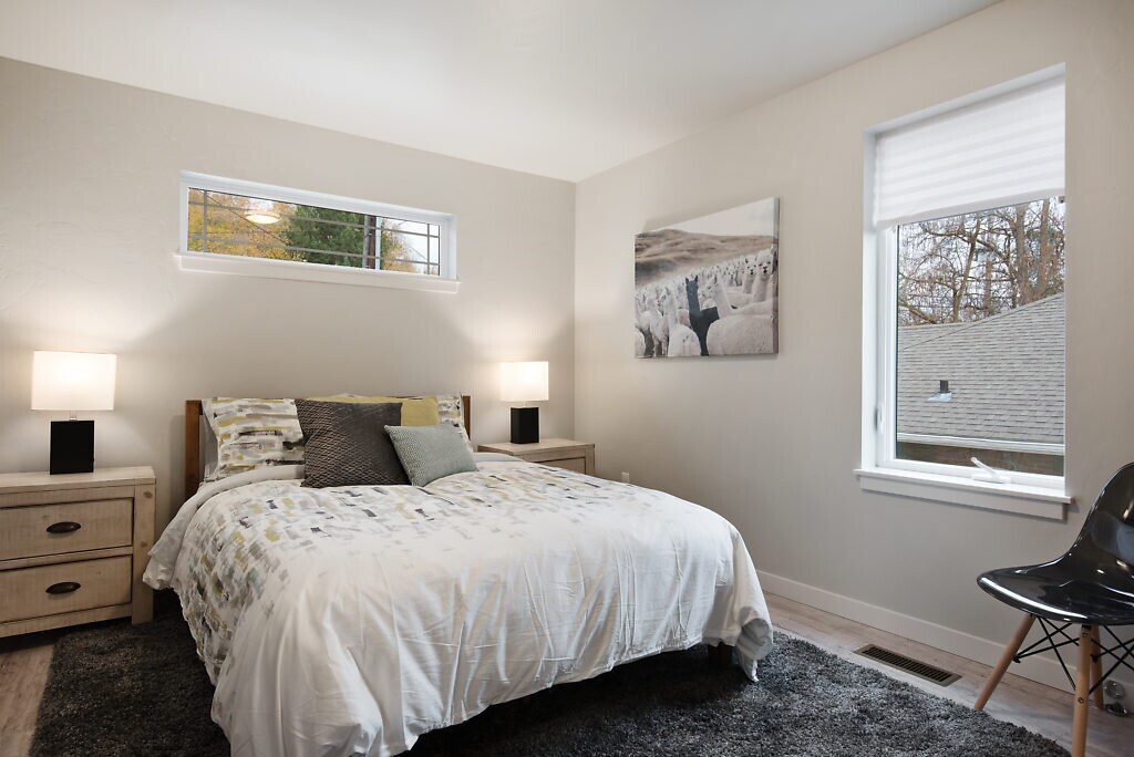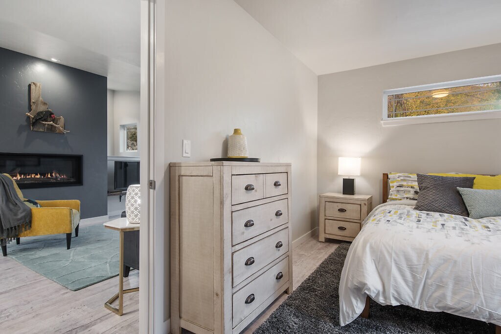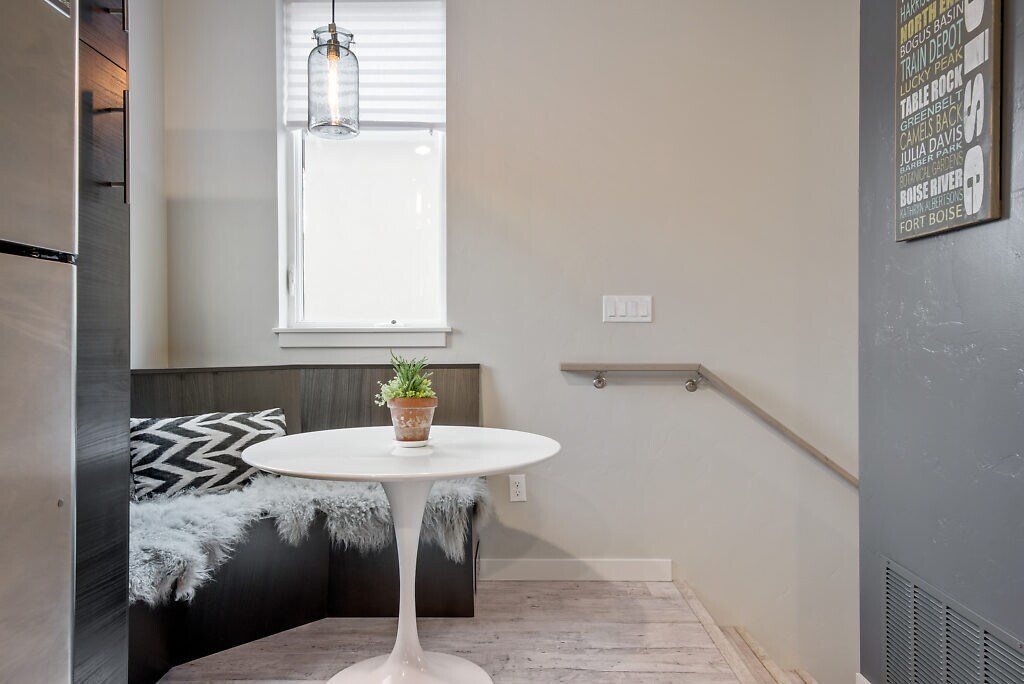 The setting: peaceful North End two blocks from Camel’s Back Park and the Boise Foothills walking and bike paths. Enjoy shops and restaurants in historic Hyde Park minutes away. The residence: This beautiful fully FURNISHED apartment has crisp white and charcoal finishes. The completely stocked kitchen, lit with large windows and built-in breakfast nook, has new sleek cabinetry and stainless steel appliances. Unwind on the comfortable couch and watch your favorite series on the Smart TV. Use a remote to adjust the romantic light and heat of your modern horizontal gas fireplace lined with driftwood and marbles. The master bedroom glows with natural light and is outfitted with premium linens and a selection of pillows. A sleek and chic bathroom boasts modern fixtures, tiled floor and lush linens. Step outside on your own private deck off the living room to catch some fresh air and beautiful views. This apartment is truly one-of-a-kind and offers private modern living in the highly desired North End. It is conveniently supplied with stackable washer/dryer. Smart TV provided (no cable). Tenants pay for water, gas, power and internet. Owner pays sewer, trash and lawn care. No pet property. Call or text Group One Property Management at to schedule your personal viewing of this sweet furnished apartment. Applications are accepted at www.groupone- Application Fee - $30 per adult. Security deposit $1725.