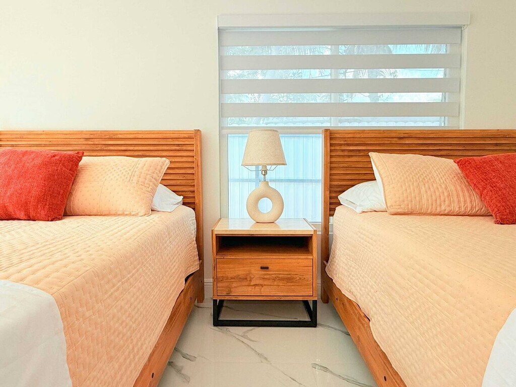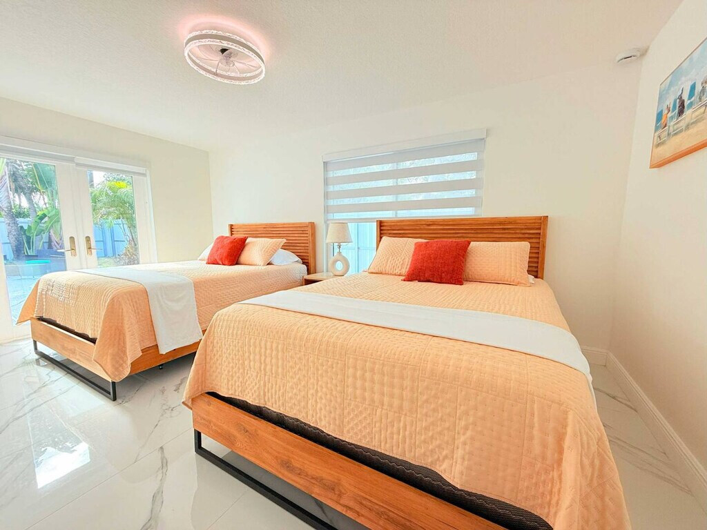 Experience the ultimate Fort Lauderdale getaway and feel at home in this modern villa, designed for families and groups seeking a luxurious yet comfortable Florida retreat. This beautifully styled villa blends high-end finishes with family-friendly spaces, creating the perfect setting to relax, connect, and make lasting memories. Every bedroom is thoughtfully designed for comfort and quality rest, featuring premium mattresses, soft linens, and blackout curtains. The chef-ready kitchen is at the heart of the home, perfect for family meals and shared moments, and features stainless steel appliances, spacious countertops, fully stocked kitchen essentials, and a coffee station. Entertainment options include a game room with a professional pool table and retro arcade, smart TVs with streaming services throughout, and high-speed Wi-Fi. Enjoy total privacy in a fully fenced backyard with a private, professionally maintained pool, sun loungers, a covered patio with outdoor dining and a BBQ grill, and a cornhole game. Pool heating is available for $20 per day and must be requested 24–48 hours before check-in. Early or late access is available upon request for a fee ($50 - $250). Pets are welcome with prior approval only. This villa is close to everything while still offering a peaceful retreat, and is located 10 minutes from Fort Lauderdale and Dania Beaches, 15 minutes from FLL Airport, and near Las Olas Boulevard and Hard Rock Casino. There are zero tolerance for parties, events, or indoor smoking, and quiet hours are enforced outdoors. Swim at your own risk, no glass is allowed on the deck, and children must be supervised. Use designated parking spaces only and do not block neighbors. Guests are responsible for missing items, damages, or plumbing clogs due to misuse. Clean the BBQ grill after use; gas is not guaranteed, and a $100 cleaning fee may apply. The primary guest must be 21+. [SI]