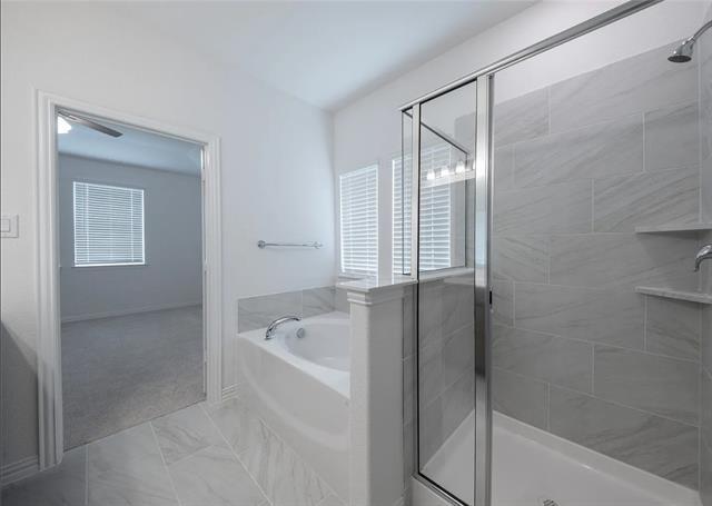 Brand-new North-facing homesite in the desirable Whitewing Trails community of Princeton. This beautifully designed Beazer Home features soaring ceilings, a curved staircase, and an open-concept layout, creating an inviting space ideal for modern family living and entertaining. The elegant designer kitchen offers quartz countertops, 42-inch linen cabinetry, and hardwood flooring throughout the main areas. Enjoy added comfort with a fireplace, covered patio, and a first-floor guest suite for convenience. This home comes move-in ready with refrigerator, washer, dryer, and blinds included—a rare find in new construction! Located in Whitewing Trails, a growing master-planned community with a future pool, splash pad, playground, and onsite elementary school, all within the Princeton ISD boundaries.