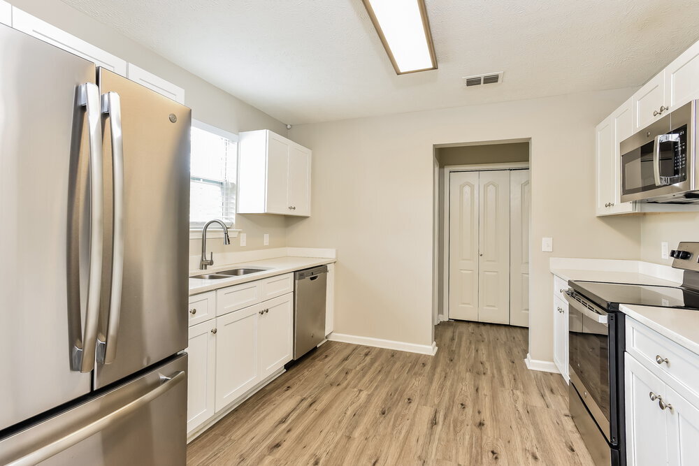 Please note, our homes are available on a first-come, first-serve basis and are not reserved until the lease is signed by all applicants and security deposits are collected. This home features Progress Smart Home - Progress Residential's smart home app, which allows you to control the home securely from any of your devices. Learn more at Want to tour on your own? Click the “Self Tour” button on this home’s listing or call to register for a self-guided showing at a time that works best for you. Some images have been virtually staged to help showcase the potential of spaces in the home. The furnishings shown are for illustrative purposes only and are not included in the home. With 1,846 square feet of living space, this three-bedroom, two-and-a-half bathroom rental home in La Vergne, Tennessee will catch your eye from the outside. The massive living room on the first floor features laminate flooring, a large front window, open access to the dining room, and a straight walkway into the home's charming breakfast nook. Attached to the breakfast nook, the kitchen offers a stainless-steel dishwasher for efficient cleaning, a single-oven range with smoothtop burners for cooking, and a spacious French-door refrigerator with a bottom freezer. The main bedroom has a full-length window on the back wall for scenic views, a walk-in closet for ample wardrobe storage, and a completely private bathroom with a tub and vanity sinks.