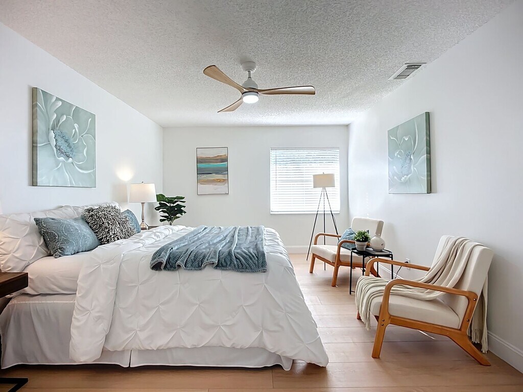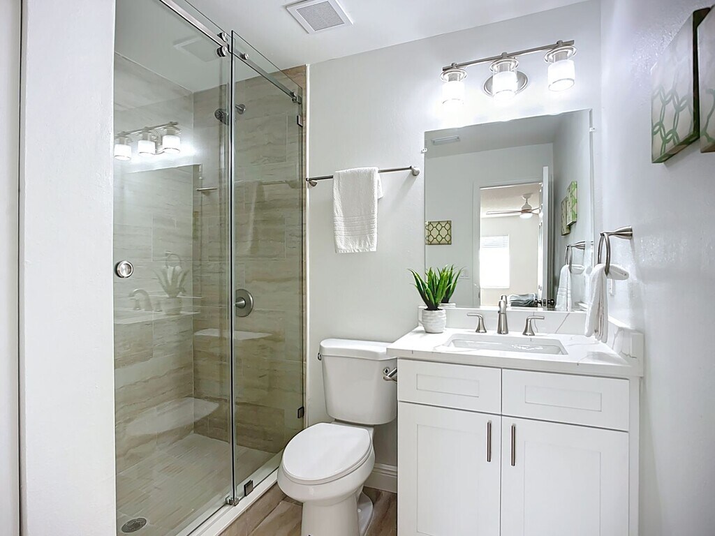 Absolutely stunning completely remodeled 2-bedroom 2 bath, 1,448 square foot home in the beautiful Kings Point 55+ community. Features include an open floor plan, brand new laminate wood floors throughout, brand new kitchen with stainless steel appliances, quartz countertops, new cabinets, remodeled bathrooms with all new faucets, finishes and light fixtures, freshly painted interior, large master bedroom includes a walk in closet and en-suite bathroom with a stand-up shower and this home has a utility room for your washer and dryer. Super private waterfront unit with no rear neighbors. The community features include gated security with 24-hour guard two clubhouses, Theater, six heated pools, 2 hot-tubs, fitness centers and a full-service spa. It also includes tennis courts, three golf courses, billiards, pickelball and other sports clubs. This maintenance-free community even has its own free transportation system, and allows access to doctors, hospitals, shopping, banking and restaurants via golf cart. Conveniently located close to shopping centers, restaurants and entertainment. Rent also includes Lawn Maintenance and access to the community pool