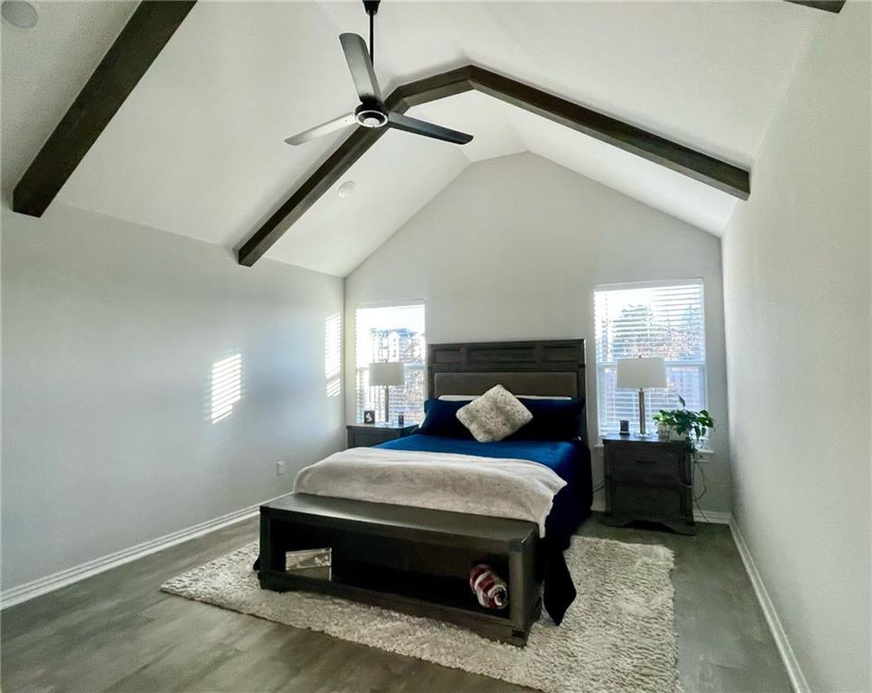 Gorgeous, like-new 4 bed, 2 bath home in an amazing location! Features hardwood floors and an open-concept layout with a cozy gas log fireplace. The kitchen offers quartz countertops, a gas range, upgraded hood vent, and breakfast nook. The primary suite includes vaulted ceilings with wood beams, a walk-in closet, and a spa-like bath with a dual-head shower and oversized vanity. Enjoy a covered patio with pergola, stamped concrete, outdoor TV hookup, landscaped yard, and solar lighting. Conveniently located near Rogers High School, shopping, I-49, and Blossom Way Trail with access to the Razorback Greenway. Don’t miss this one! **$250 non-refundable pet fee per pet ** MLS# 1334397