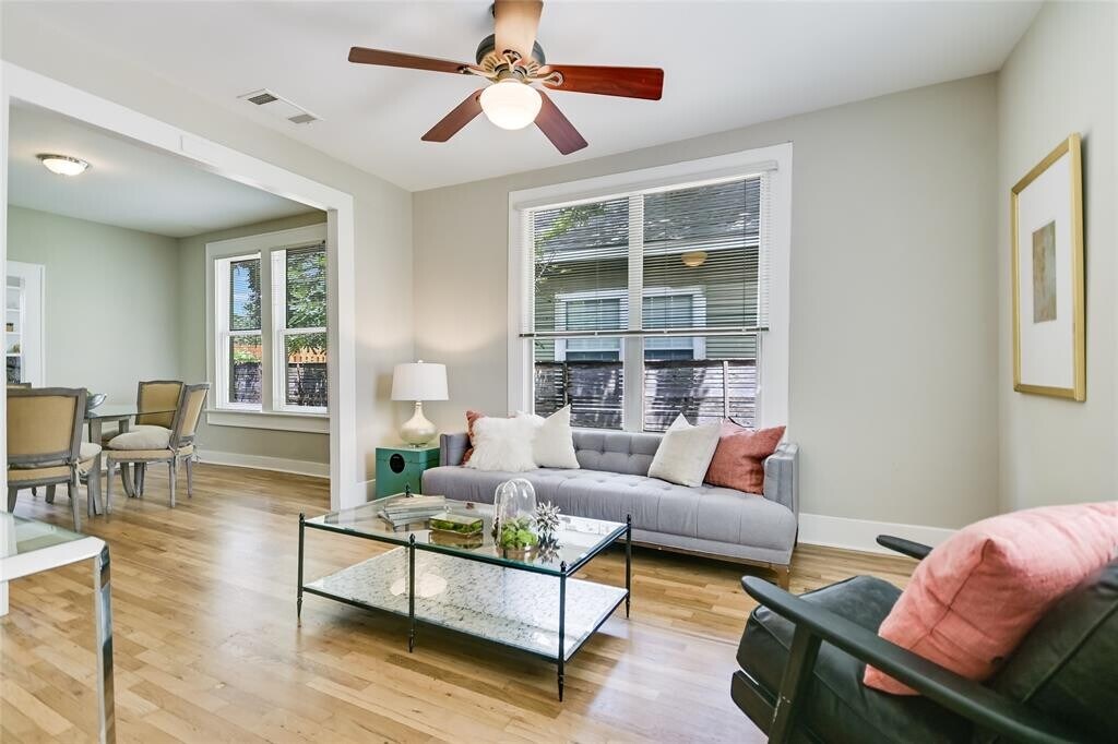 WASHER, DRYER, FRIDGE INCLUDED. Single-story bungalow • Street-facing home on Willow St • Large fenced backyard • Near parks, dining, and Lady Bird Lake. Street-facing, single-story residence located on Willow Street in the Holly neighborhood of East Austin. This 1936 bungalow offers hardwood flooring, an open living and dining layout, and two bedrooms on the main level with no interior stairs. The full bathroom is accessible from both bedrooms and the hallway. The kitchen connects to the living and dining areas, creating a functional floor plan. A dedicated laundry closet is located inside the unit, and the refrigerator, washer, and dryer convey. The private backyard is fenced and offers outdoor space for entertaining, pets, or gardening. Off-street parking available. No monthly HOA dues. The home is individually metered. Recent updates include a new HVAC system installed in July 2023 and a water heater replaced in January 2023. Front yard fencing was added in March 2023. Conveniently positioned near East Austin amenities, the property is approximately 0.3 miles to Pan American Neighborhood Park, 0.6 miles to Whole Foods Market at Plaza Saltillo, 0.6 miles to Lady Bird Lake Trail access, and under one mile to Metz Neighborhood Park and Edward Rendon Sr. Park at Festival Beach. Nearby dining, coffee shops, and entertainment options are located along East 5th Street and East 6th Street. Plaza Saltillo MetroRail Station is approximately 0.7 miles away, providing access to downtown Austin and north Austin. Survey reflects approximately 1,261 sq ft of living area; TCAD reflects approximately 1,156 sq ft. Limited Common Element yard area is approximately 4,173 sq ft. *Tenant to independently verify all information including but not limited to square footage, restrictions, yr built, schools, etc. Professionally edited photos. MLS ID 4370554