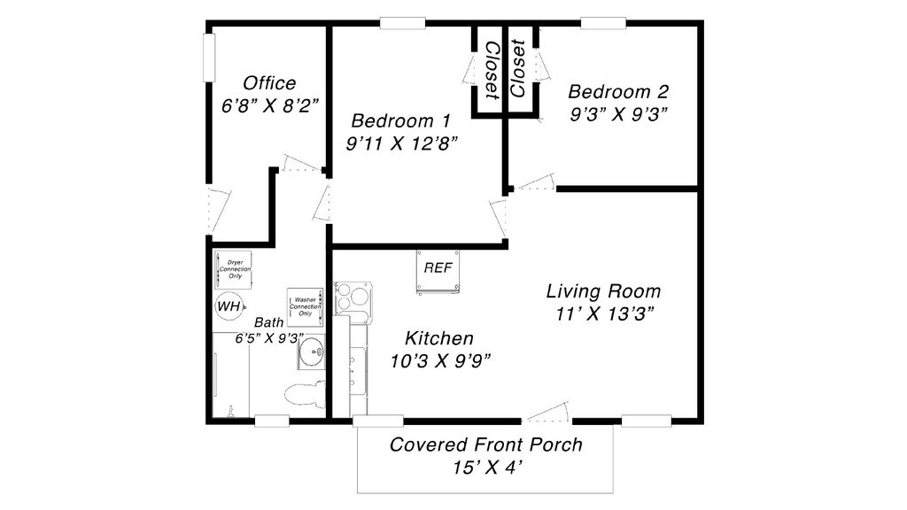 Open floor plan with 2 bedrooms, one bath, and an additional room for 3rd bedroom, office, or storage. NOTES: 1) Dove Properties is not responsible for information provided on third party websites. 2) Available Date is approximate and may not be guaranteed.
