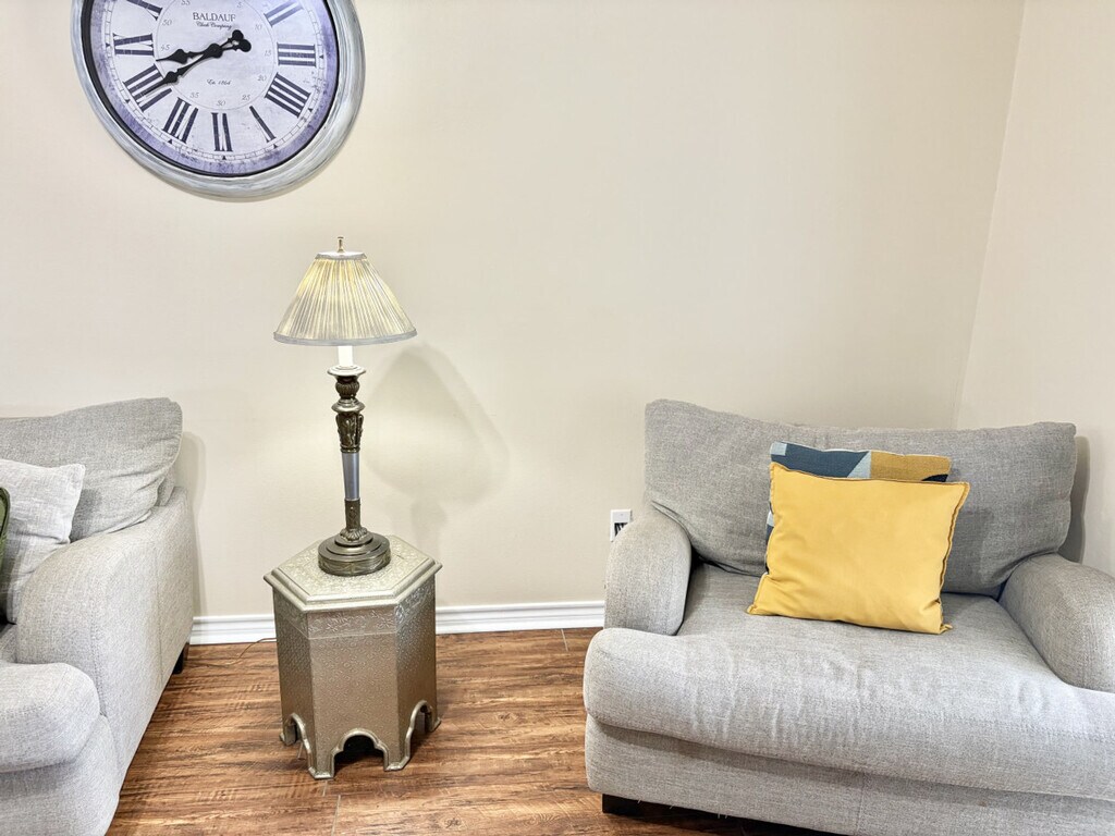 Welcome to this cozy 3-bedroom, 2-bath home at Parkside at Wolfpen, just 8 minutes from Kyle Field and next to Wolf Pen Creek Park. Perfect for families, friends, or game-day visitors, feel at home in this comfortable and convenient apartment. This apartment features an open floor plan with an expansive living area, plush seating, a flat-screen smart TV, and elegant decor throughout. The fully equipped kitchen includes small appliances and housewares, a dining table for large meals, and barstool seating. Enjoy the fenced backyard for pets or outdoor lounging. This apartment is pet-friendly. A $200 non-refundable pet fee is required. Located steps from Wolf Pen Creek Park, you'll have access to live music, walking and biking trails, and nearby entertainment like Spirit Ice Arena and Grand Central Station. Kyle Field is just 8 minutes away, and there's driveway plus extra street parking available. Smoking is not allowed in or on the property. If there is any evidence of smoking, $400 will be retained to deodorize the home. Do not turn the thermostat below 69 during the summer, as the unit could freeze, and you will be charged the cost to repair the heating/cooling system. When leaving in the summer, turn the thermostat up to 80 degrees. When leaving in the winter, turn the thermostat down to 60 degrees. People other than those accounted for in the booking agreement may not stay overnight on the property. If unauthorized guests have stayed, a fee of $300 will be retained plus $25 per person. Parties are prohibited. If a pet is found on the property without prior approval, a pet fee will be charged and the booking may be terminated. Guests are responsible for cleaning up after their pets. Parking is only allowed in respective areas on the property. Towing is enforced, and any illegally parked cars are subject to towing; applicable fines/towing fees are the sole responsibility of the vehicle owner. If the cleaning crew finds that the property has been left excessively dirty, you will be billed for the additional cleaning time at a rate of $50 per hour. Do not flush anything other than toilet paper. If it is found that feminine products or other products besides toilet paper have been flushed and clogged the plumbing system, you will be charged the cost of the plumbing repair. Fires are not allowed on the property, and absolutely no candles may be burned in the house or on the property. No grill onsite. No trash or other items may be left on the property or outside the front door. All trash must be bagged when placed in a dumpster. There will be a $20 charge if this rule is not followed. For long-term guests, trash pickup is Thursday morning, so please roll the dumpster to the end of the alley Wednesday evening. Guests shall not disturb, annoy, endanger, or inconvenience neighbors, nor use the premises for any immoral or unlawful act. Should there be security cameras, guests may not alter, tamper with, or access them in any way. Failure to follow this rule will result in charges for the full amount of the damage caused by such failure. Guests will need to provide their own paper goods. An initial set-up of trash liners, toilet paper (1-2 in each bathroom), and hand soap are provided. Extra items needed are the responsibility of the guest (i.e., toothpaste, soap, extra toilet paper, shampoo, sunscreen, etc.). [SI]
