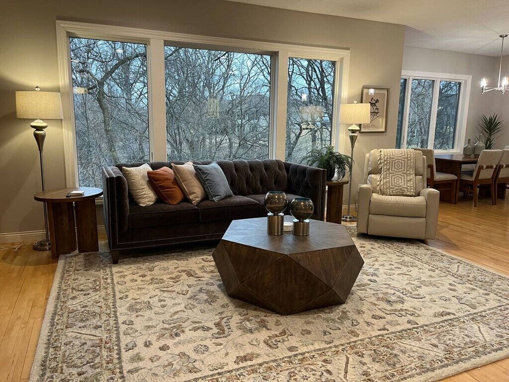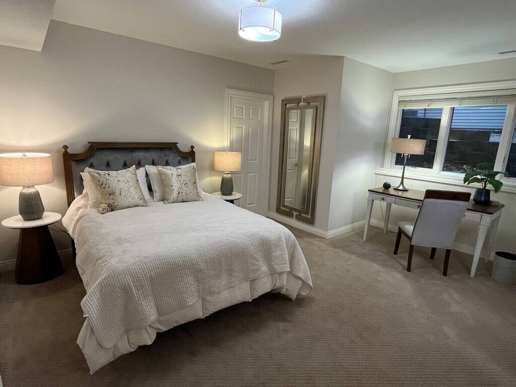 This high-end walk-out ranch is just 1.8 miles from Mayo Clinic and offers comfort, space, and privacy. With 2 bedrooms on the main level and 3 downstairs (one with an office), it’s ideal for extended stays or work trips. The primary suite features a jacuzzi tub and walk-in shower. Maple floors and large windows with wooded views add warmth throughout. Enjoy peaceful outdoor spaces with a screened-in porch and patio—perfect for relaxing after a long day.