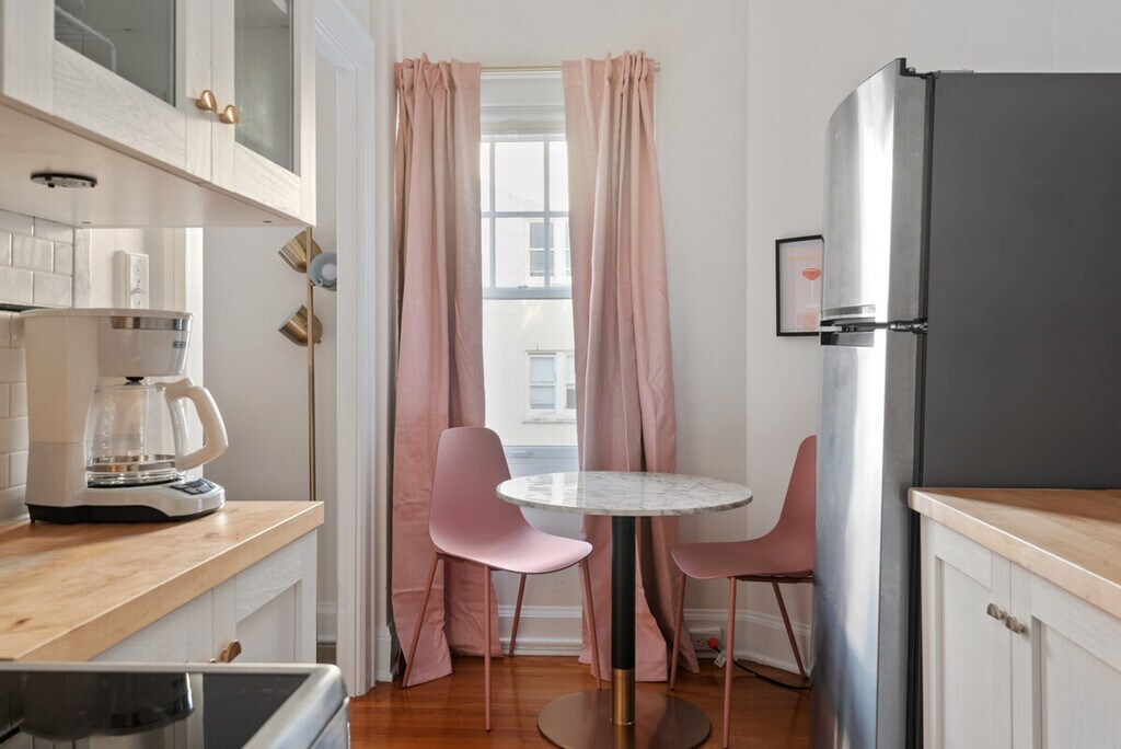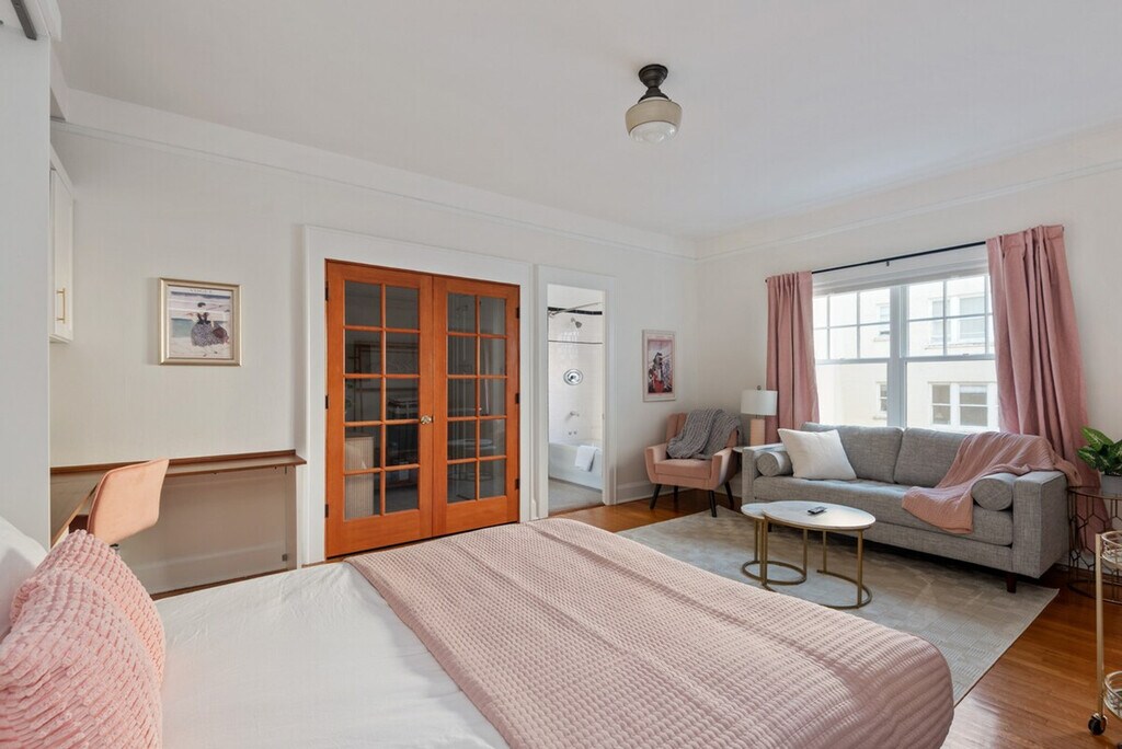 The advertised rate of $2,475/month is the lowest available price, based on a 30 day(s) stay with a move-in date of March 3, 2026. Rates vary depending on the duration of stay, season, and other parameters. For exact pricing and additional pricing components, please visit our website and enter your desired move-in and move-out dates. The rate is applicable when billed upfront; it can be higher if billed in multiple payments. Enjoy a stylish experience at this centrally located studio on the 4th floor of a building with elevator access. Feel at home in this 450 sq ft studio set in a historic 1920’s prewar condo building in walkable Nob Hill. Inside, you’ll find a queen-size murphy bed with blackout curtains and a comfortable living area with a Smart TV. The fully outfitted kitchen includes everything you need to whip up a gourmet meal. Enjoy lots of natural light and A/C in the summer. Free on-site laundry is available on the first floor. The building offers a secure entrance. Pet-friendly, this studio offers reserved parking. Guests have private access to the studio apartment, including the full kitchen, bathroom, on-site laundry (shared), outdoor courtyard (communal), and downstairs gym on the first floor. You'll also have your own dedicated off-street parking spot and can enjoy easy, flexible entry with the smart lock. Step outside and you’re just moments from Portland favorites like Ken’s Bakery (2 min walk), Trader Joe’s (4 min), pet friendly Couch Park (4 min walk), Salt & Straw and other fun stores and restaurants on NW 23rd Avenue! Hospitals and transit are close by: 3 min walk to Tri-Met MAX station, 11 min walk to Legacy Good Samaritan, 2.7 mi to Legacy Emmanuel Hospital, 2.8 mi to OHSU, 3.3 mi to Kaiser and 4.6 mi to Providence St. Vincent. The studio condo is perfectly situated in a lively urban neighborhood, which means you may hear the sounds of the city. Most guests find this adds to the charm of staying in such a vibrant area, but white noise machines have also been provided for added comfort. Additionally, this unit is located next to the elevator so you will hear the elevator coming and going from time to time. The building is fob entry only, so you will need to go downstairs to let people in. Please arrange to arrive at the building between 3pm and 8pm, as we need to be available to buzz you into the building on your initial arrival. In the event of a lockout outside of business hours because you lost or left your keys inside you are financially responsible for finding lodging or getting back into the unit. Includes a dedicated workspace and high-speed Wi-Fi to make remote work easy. [SI]