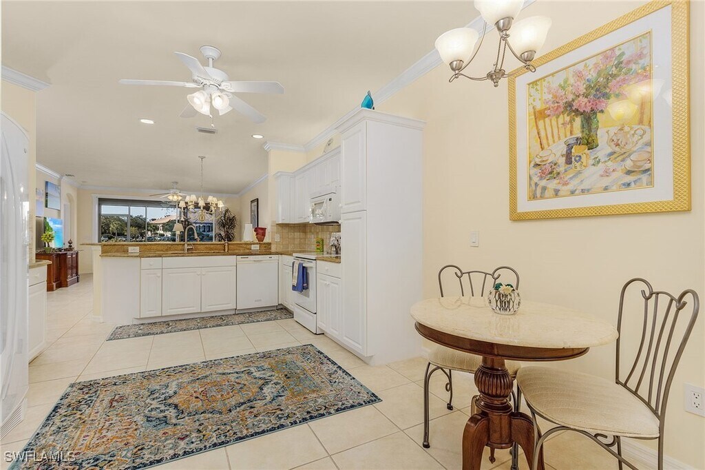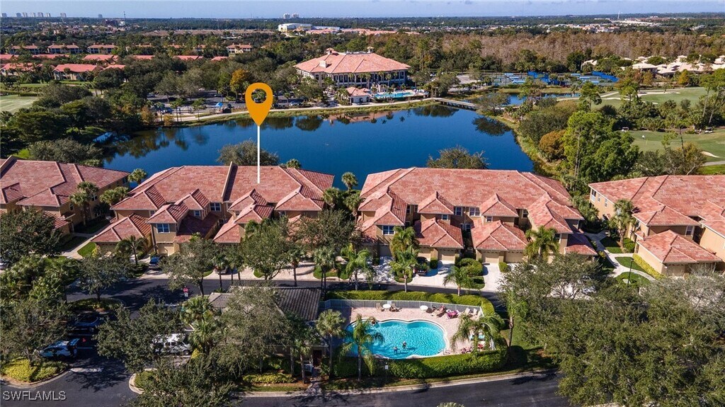 Sit back and enjoy the beautiful sunsets beyond the large lake from the lanai in this convenient,first floor,3 bed,2 bath condo with attached garage. This immaculate unit offers many upgraded features such as large tile in main living areas,beautiful bamboo hardwood floors in primary suite and guest bedroom,plantation shutters,crown molding throughout. Large kitchen with rich granite counter-tops and backsplash,cabinets with crown molding all add to the appeal of this unit. The gorgeous master suite with bay windows adds yet further tranquil views of the lake. Primary bath boasts custom large walk-in shower surrounded in luxurious tile,dual sinks. Other features include tiled lanai with roll safe electric shutters. Sabal Palm of Grandezza offers this neighborhood its own private pool and rec ctr. Enjoy the beautiful,renovated clubhouse offering many amenities with resort style pool and spa,cabana restaurant,Bogeys for casual dining,the Hub Bar,and elegant ballroom style dining,fitness room,basketball court,bocce ball courts,tennis,pro-shop,and 18-hole golf course and putting green (members only). Conveniently located close to airport,with endless shopping and dining just outside the gate!