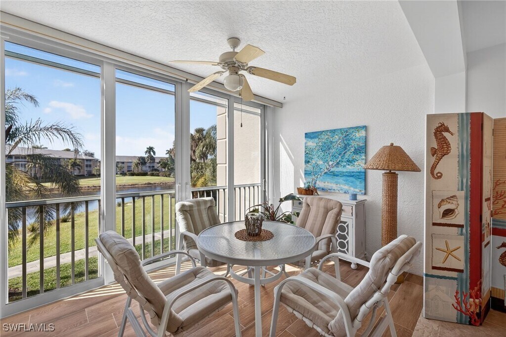 TURNKEY FURNISHED AVAILABLE APRIL-DECEMBER RENTAL. Beautifully maintained and end-unit condo offering 2 bedrooms plus a den. Features include tile flooring throughout,tastefully decorated,golf course & lake views,fully equipped kitchen,linens and everything you need for a comfortable stay! Breckenridge community,residents enjoy an array of amenities,including an 18-hole par-3 golf course,five swimming pools,eight tennis courts,three pickleball courts,three bocce courts,and six shuffleboard courts. The newly renovated clubhouse offers a business center,fitness room,catering kitchen,library,and a spacious community room for gatherings and events.Conveniently situated near shopping,dining,the international airport,and just a short drive to the stunning beaches of the Gulf of Mexico,this property offers the perfect blend of comfort,convenience,and resort-style living.