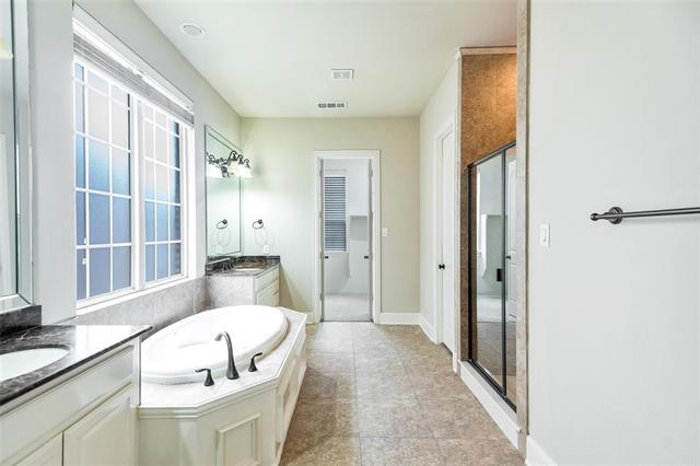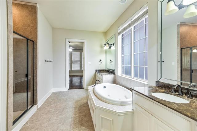 Welcome to this stunning Platinum Series home, located in the highly sought-after master-planned community of Castle Hills. This immaculate property boasts extensive hand-scraped floors, granite countertops, stainless steel kitchen appliances, a 6-burner gas cooktop, and a fabulous stone elevation. Recent upgrades include new AC units on both floors, a tankless water heater installed last year, and a new dishwasher installed early this year, adding comfort and efficiency to this already exceptional home. The open floor plan includes a study and a ground-floor master bedroom, making it a perfect retreat for the original owner who has meticulously maintained the property. The oversized master suite features a luxurious bath, jetted tub, and walk-in closet. Enjoy the large game and media rooms with family and friends. Step outside to a nicely sized backyard with a huge covered patio, perfect for relaxing or entertaining. Enjoy all the community amenities, including a clubhouse, pools, parks, walking trails, and tennis courts. Conveniently located near major highways for an easy commute, just minutes from DFW Airport, Legacy West, shopping, dining, and more.