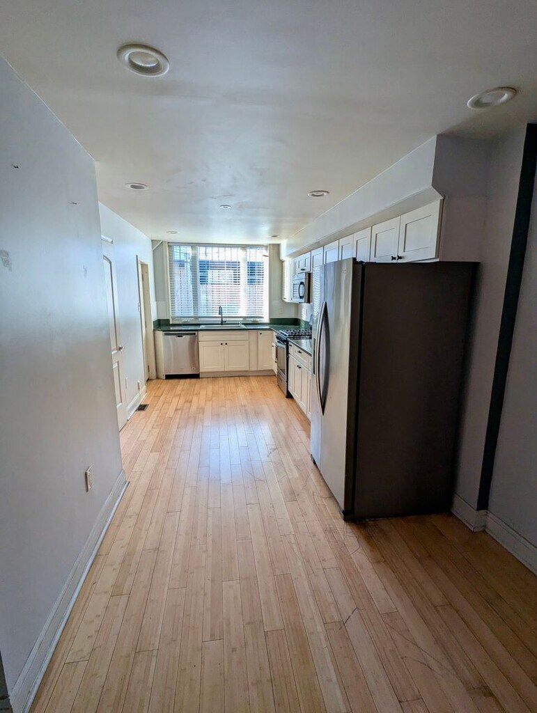 Are you searching for your next home in Point Breeze? This beautifully renovated residence offers 3 spacious bedrooms, 1.5 bathrooms, and a fully finished basement, combining modern comfort with classic city charm. The first floor features a bright, open-concept layout with gleaming hardwood floors that flow seamlessly from the living room into the kitchen. You’ll enjoy high ceilings, a generous living and dining area, LED recessed lighting, and a convenient powder room. The eat-in kitchen is equipped with stainless steel appliances, crisp white shaker cabinets, and a large walk-in pantry for added storage. From the kitchen, step out into a private rear cement yard, perfect for summer barbecues, entertaining guests, or creating your own urban garden retreat. Upstairs, you’ll find three well-sized bedrooms and a large full bathroom showcasing custom tile work and a spacious tub-shower combination. The finished basement offers additional living space along with ample storage options. This move-in ready home is updated throughout and ideally located within walking distance to public transportation, Passyunk Square, Newbold, Center City, restaurants, supermarkets, and more. A true must-see in one of Philadelphia’s most desirable neighborhoods.