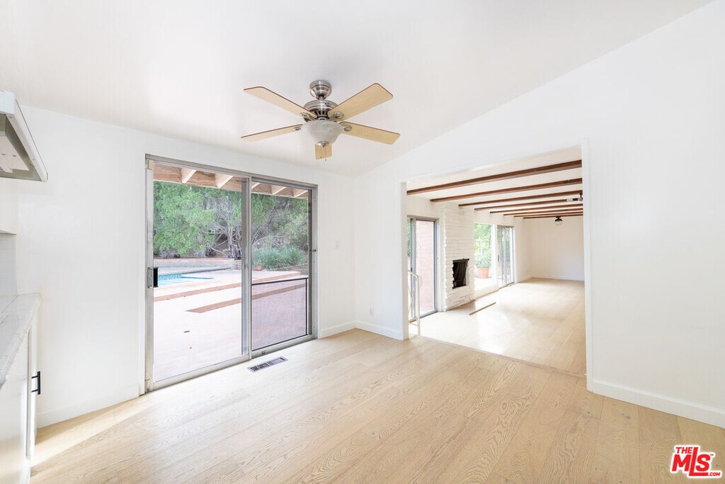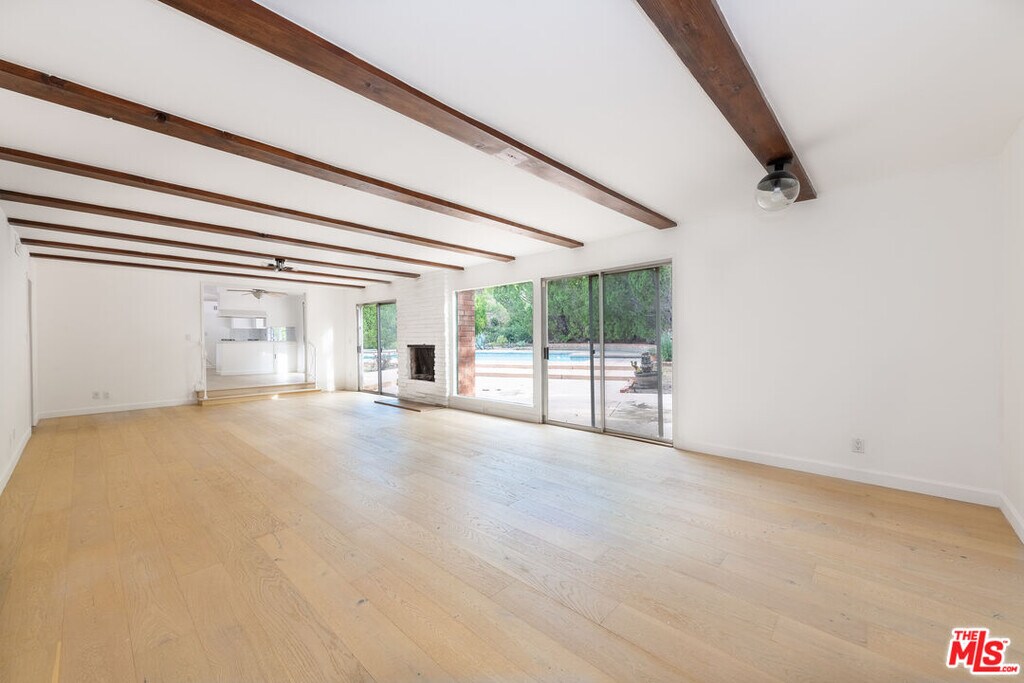 Situated south of the Boulevard in a sought-after Woodland Hills neighborhood, this classic mid-century home is filled with great natural light and offers an easy indoor/outdoor lifestyle ideal for SoCal living. The two-story ranch-style floor plan opens to a generous living room with a stone fireplace, beautiful wood floors, and large windows that create a bright, welcoming atmosphere for both everyday living and entertaining. Just beyond, a dining area that flows into the well-appointed eat-in kitchen, offering ample counter space for cooking and food prep, all overlooking the private backyard and recently re-tiled, oversized pool. The family room/den is a comfortable space for gathering with family and friends. Upstairs, the primary suite enjoys peaceful garden views and features a wall of closets, a luxurious, en-suite full bath, and a separate dressing area. The additional bedrooms are well-sized and filled with natural light, making them ideal for guest rooms, a home office, or flexible living space. Additional highlights include a three-car garage with excellent storage, extra off-street parking, and a convenient location close to dining, shopping, and entertainment. A fantastic opportunity to enjoy comfortable living in one of Woodland Hills' most lovely neighborhoods. MLS# 26640771
