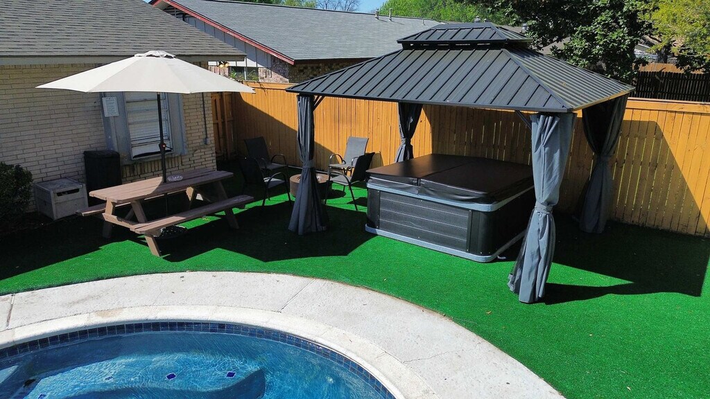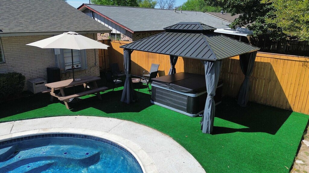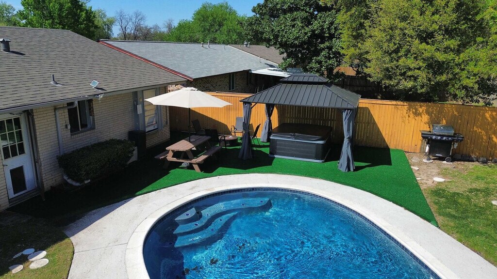 The advertised rate of $7,626/month is the lowest available price, based on a 30 day(s) stay with a move-in date of August 22, 2026. Rates vary depending on the duration of stay, season, and other parameters. For exact pricing and additional pricing components, please visit our website and enter your desired move-in and move-out dates. The rate is applicable when billed upfront; it can be higher if billed in multiple payments. Feel at home in this bright and inviting 4-bedroom home, located 11 mi (18 km) from AT&T Stadium, making it ideal for World Cup trips and exploring the DFW area. Designed for gatherings, this single-level home features open living spaces, a backyard pool, and comfortable bedrooms. The recently renovated kitchen is spacious and equipped with high-end stainless steel appliances. For entertainment, enjoy big TVs in the living room and primary bedroom, and an Xbox in the living room. You will also find a washer/dryer, baby crib, highchair, vacuum, and cleaning products. Linens and towels are provided. House-trained pets are welcome for a fee of $150 per pet per stay. An additional fee of $39 per guest per night will be charged starting from the seventh guest. The fourth bedroom will be opened for groups of 8+ guests to accommodate their sleeping arrangements. Located in Irving, one of the most diverse cities in the U.S., this home is conveniently located just 7 miles from DFW Airport, 12 miles to downtown Dallas, and 8 miles from the AT&T Stadium. You’ll be close to nature with lots of parks and lakes nearby, such as Running Bear Park (1.4 miles) and Irving Lake (2.5 miles). For family fun, Epic Waters Indoor Waterpark is 10 miles away, and Ripley’s Believe It or Not Museum is 4.5 miles away in Grand Prairie. Six Flags Over Texas is also nearby at 12 miles away. The Irving Convention Center is 9 miles away, as well as the Toyota Music Factory. Grocery store is just 1 mile away and various restaurants are 1.5 miles away. Only registered guests are permitted during your rental period. No parties or large gatherings are allowed. Indoor smoking is strictly prohibited and a violation will incur a $500 fine. Quiet hours are between 10:00 p.m. and 9:00 a.m. [SI]