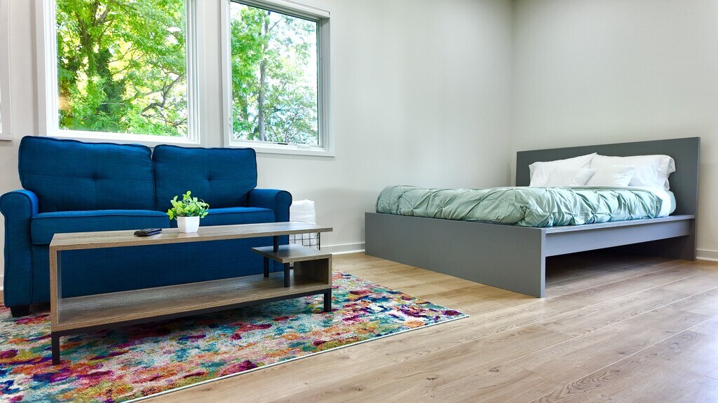 Welcome to your modern urban retreat 2.8 miles from downtown Charlotte, NC! This studio apartment offers the perfect blend of convenience and contemporary living. As you step inside, you're greeted by a stylish and fully furnished space designed for comfort and functionality. The open layout seamlessly integrates a cozy living area, a comfortable bed, sleeper sofa and a dining nook, creating an inviting atmosphere for both relaxation and productivity. The full kitchen is equipped with sleek appliances and ample countertop space, perfect for preparing delicious meals at your convenience. Whether you're whipping up a quick breakfast or hosting a cozy dinner, you'll find everything you need right at your fingertips. Located within walking distance of public transportation, commuting around the city is a breeze. Explore Charlotte's vibrant neighborhoods, visit local attractions, or simply enjoy the convenience of nearby shops and restaurants. 4 Miles from NODA, 1.7 Miles from Camp North End, 1.2 miles from Heist Brewery. For those who prioritize fitness, take advantage of the shared on-site gym facility, ensuring you can maintain your active lifestyle without leaving the comfort of your community. This studio apartment offers a prime location and all the comforts of home. Experience Charlotte living at its best and make this stylish studio your new home sweet home!
